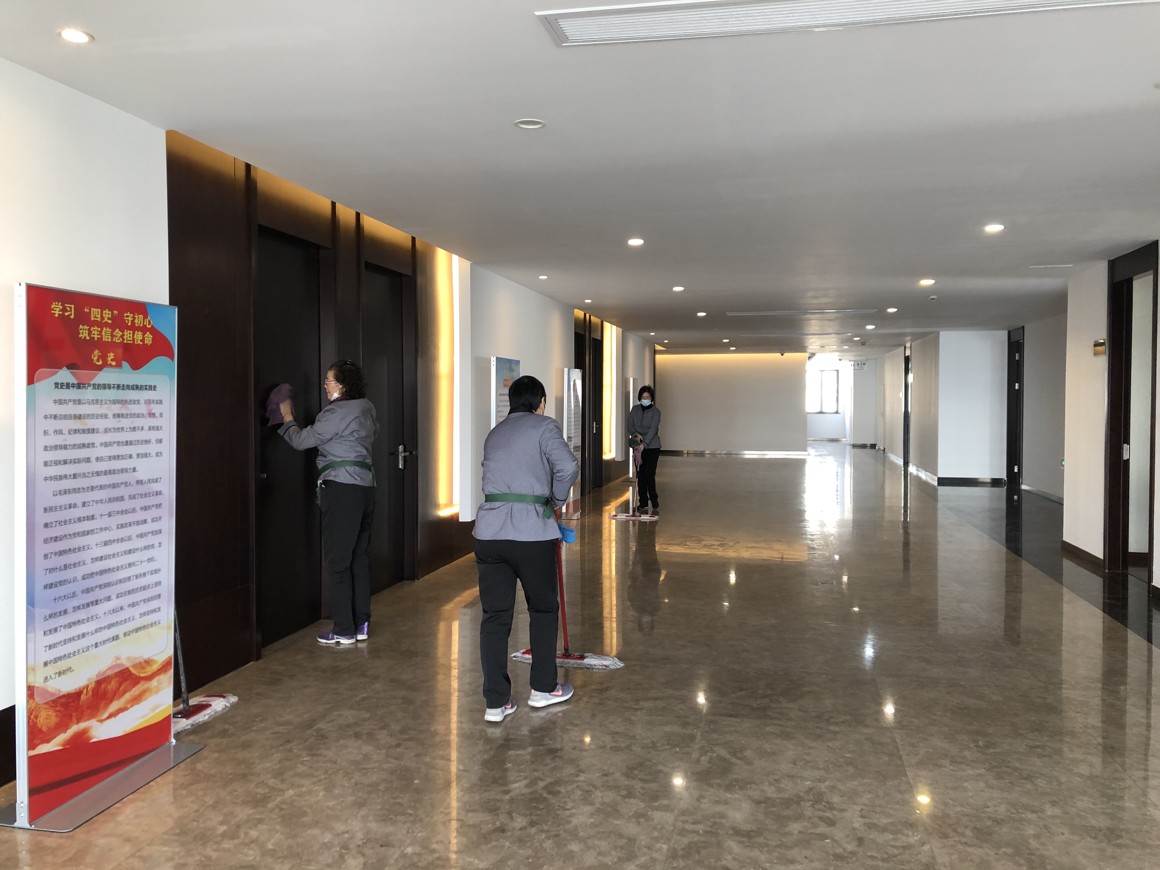 公司按照甲方的要求,嚴(yán)格落實(shí)疫情防控措施,核查來(lái)訪人員行程碼、核酸檢測(cè)報(bào)告,進(jìn)行體溫測(cè)量、信息登記。增加消殺頻次,對(duì)電梯、走道等公共區(qū)域的門把手、物品表面每天進(jìn)行全覆蓋循環(huán)擦拭消毒,全力配合甲方做好疫情防護(hù)工作,為助力甲方營(yíng)造安全、安心、舒適的工作環(huán)境作出了不懈努力。