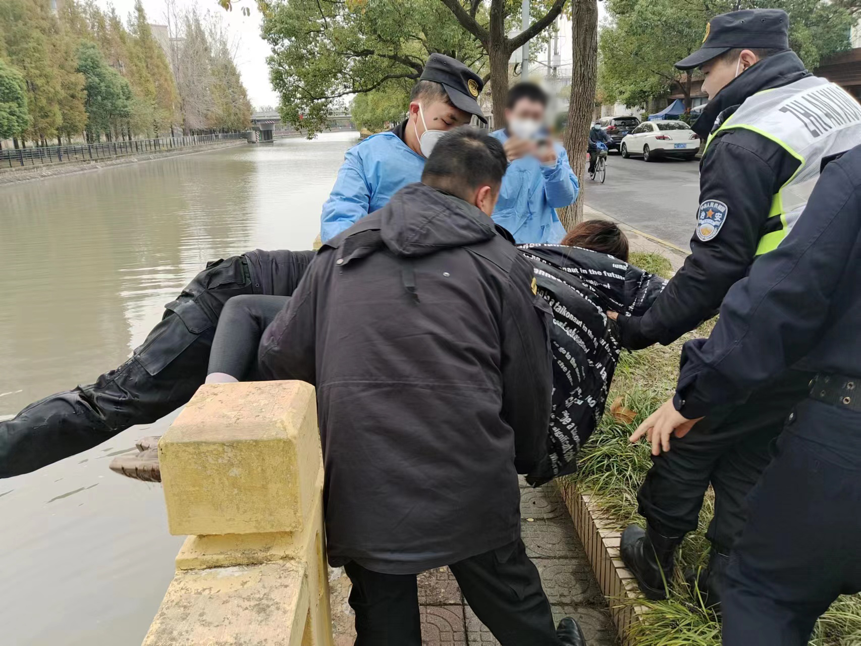 冬日的河水冰冷襲人,剛從河里爬上來的朱路路,渾身濕透凍得瑟瑟發(fā)抖,已經累得精疲力盡。幾名員工向趕到現場的民警說明情況后,隨即裹帶著朱路路離開,該女子則由民警進行后續(xù)處理。