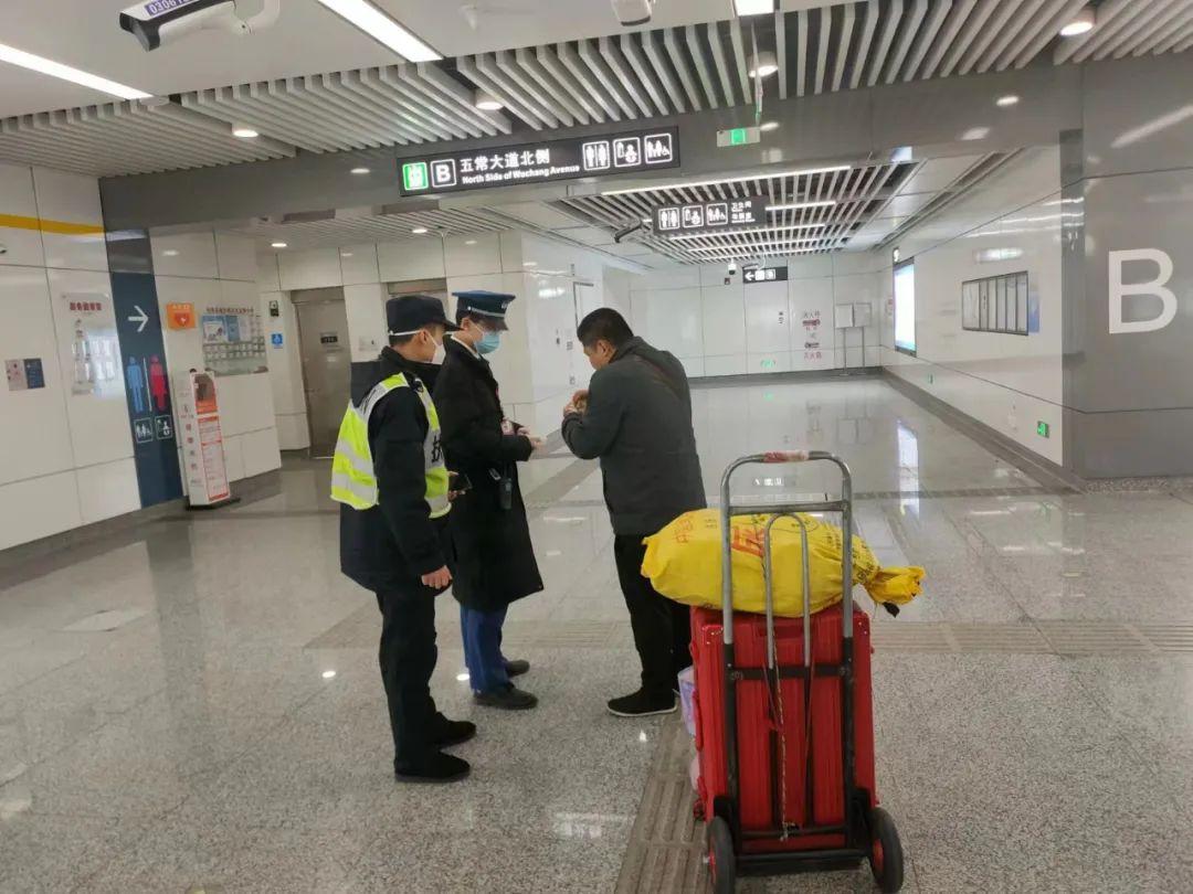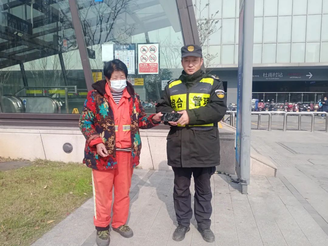 當(dāng)日凌晨2:36,公司員工孟顏和李曉在五常街道余杭塘路永福地鐵站E出口巡邏時(shí),看到一個(gè)推著大拉桿箱的男子在地鐵口來(lái)回走動(dòng),便趕緊上前詢(xún)問(wèn)。原來(lái)該男子是位盲人,因行動(dòng)不便準(zhǔn)備在地鐵口湊合一晚,等天亮再坐地鐵去其工作的地方。