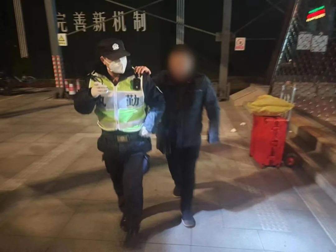 冬日深夜氣溫低,為防止發(fā)生意外,兩人將情況報(bào)告了派出所指揮平臺(tái),并按指示將男子先帶回派出所暖身,待其酒醒后再送回住所。