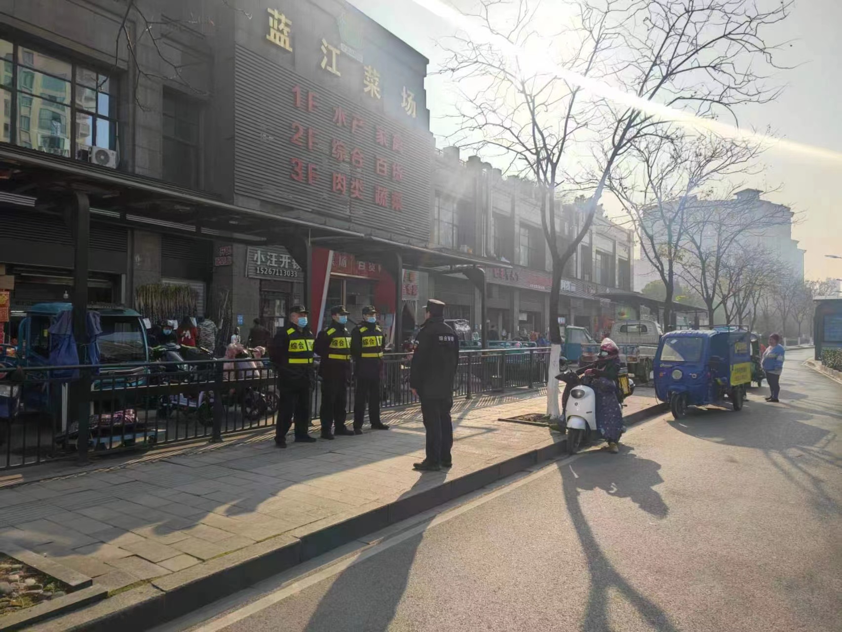 公司項目員工按照藍江菜場的要求,不辭辛苦、耐心細致,嚴把市場進入關,對進入市場的人員進行測溫、驗碼,對進入市場的車輛消毒檢查,時時提醒市場內人員戴好口罩,并督促攤位及時清洗、消毒,為藍江菜場的正常運營提供了有力保障。