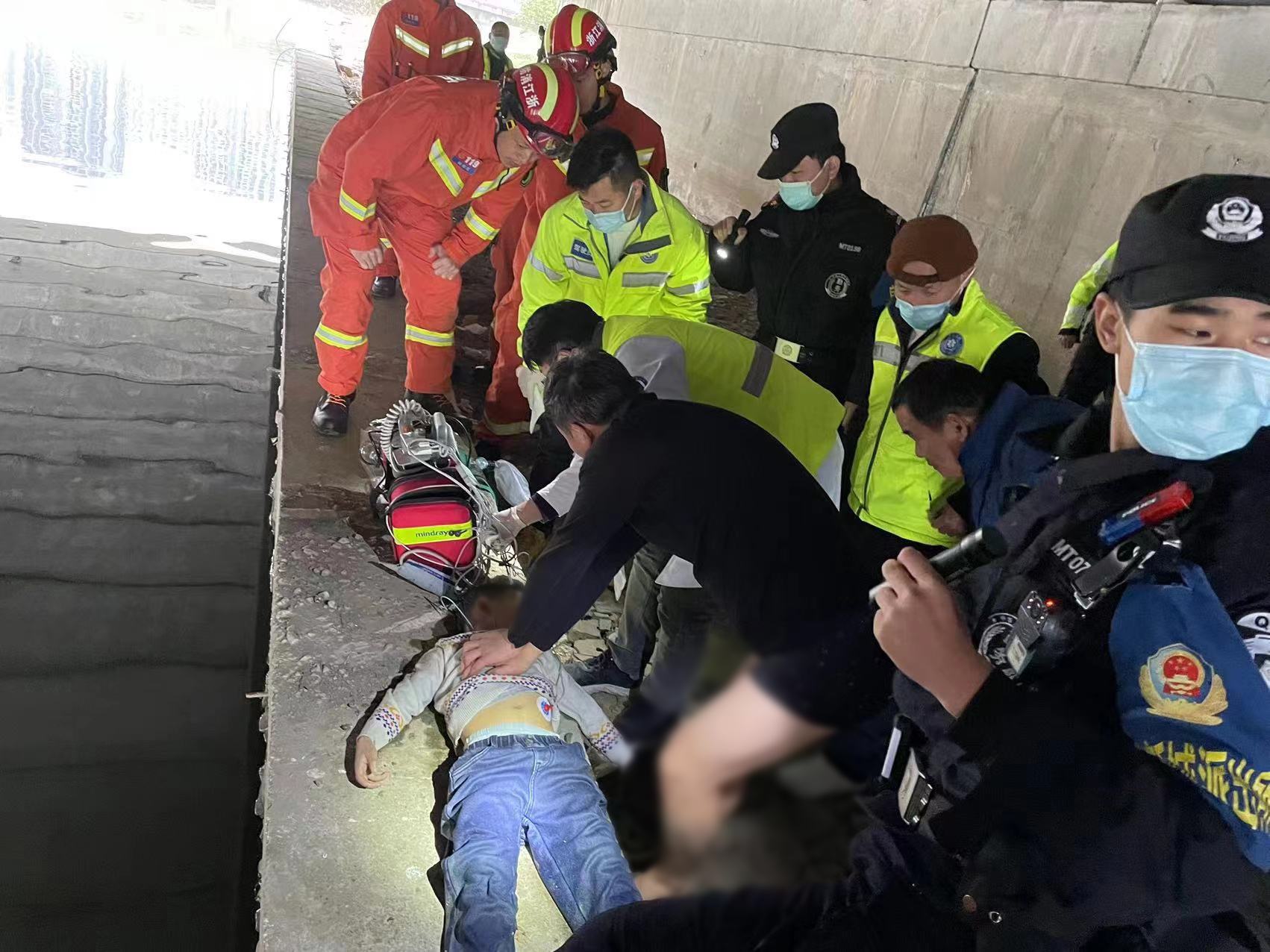 三人很快來到事發(fā)地,此時河中有一女子正在掙扎。情況緊急,輔警周東明和員工馬凱凱顧不上水冷河深趕緊跳進(jìn)河中,馬凱凱拽住女子往前拉,周東明托住女子防下沉,兩人一同將女子往岸邊移,最終合力將女子成功救上岸。