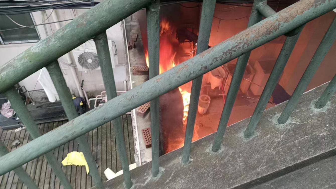 小區(qū)樓道起火 員工及時(shí)撲救