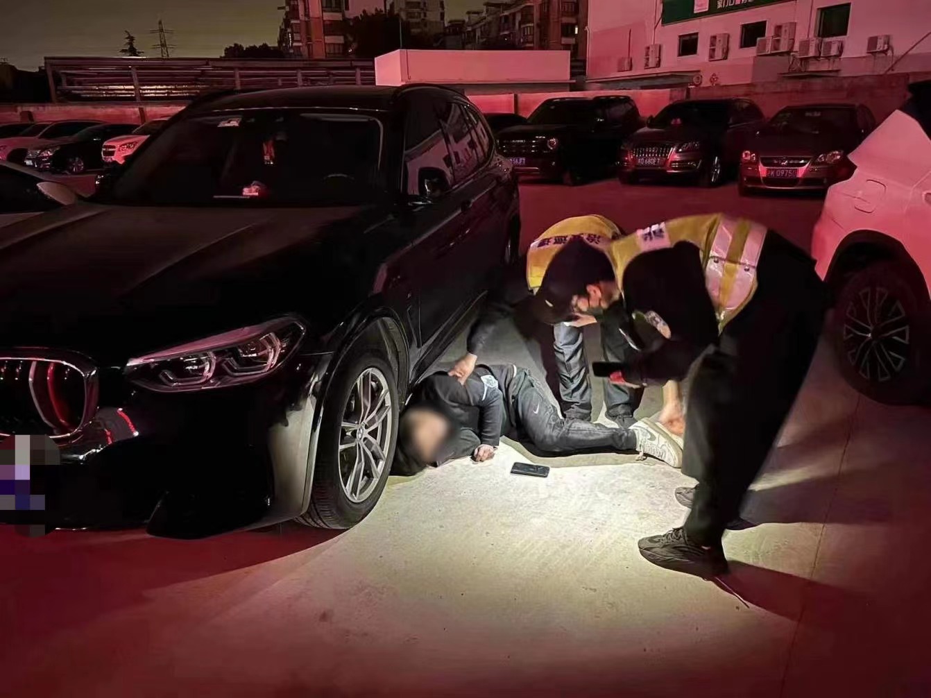 當(dāng)天凌晨1:00,公司員工夏單松和秦天龍巡邏至川周公路周東路停車場(chǎng)時(shí),發(fā)現(xiàn)一男子躺在地上,滿身酒氣疑似醉酒,且一半身體在轎車車身下,再加上停車場(chǎng)光線較暗,隨時(shí)都可能會(huì)發(fā)生被碾壓的危險(xiǎn)。兩人趕緊蹲下察看,夏單松輕拍男子試圖叫醒他,但可能由于飲酒過(guò)多醉酒昏睡,無(wú)法問(wèn)清其姓名和家庭住址。