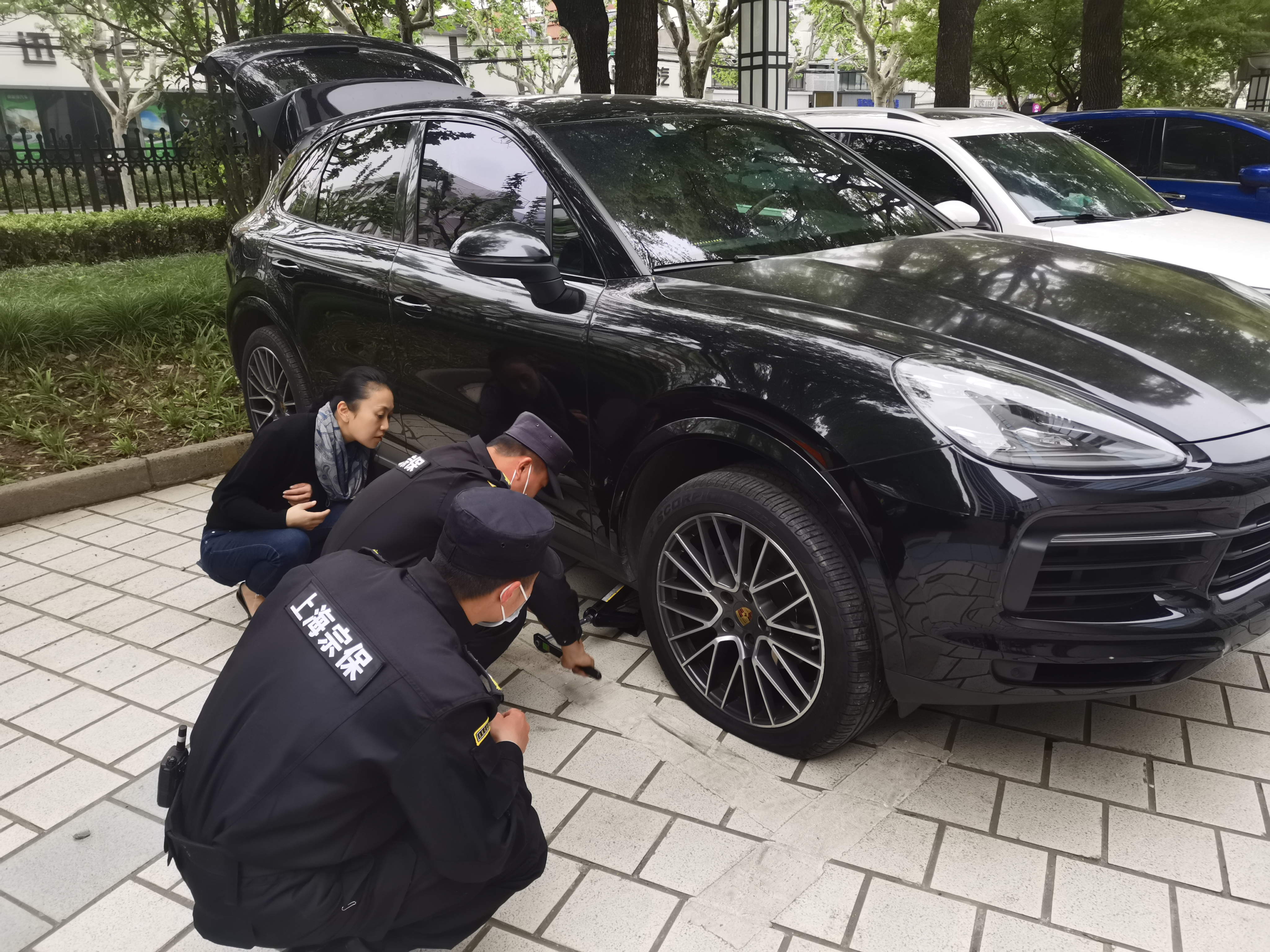 4月25日,宗保公司駐閔行區(qū)市委黨校項(xiàng)目員工幫助參訓(xùn)學(xué)員更換輪胎。