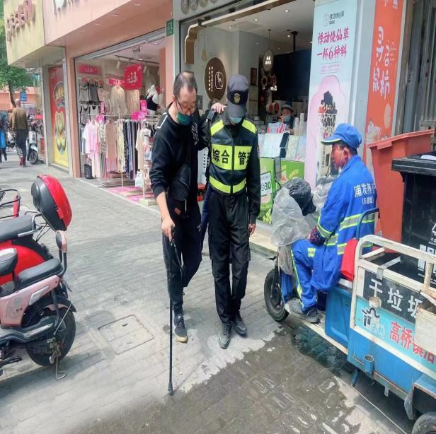 4月28日,宗保公司駐浦東新區(qū)高橋市容項(xiàng)目員工幫助摔倒大叔。