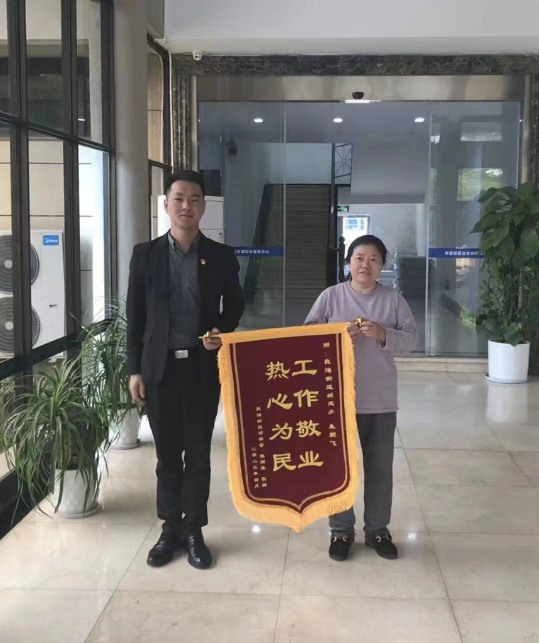 4月28日,浙江民泰公司駐杭州市余杭區(qū)良渚物流項(xiàng)目收到市民程阿姨送來(lái)的一面繡有“工作敬業(yè) 熱心為民”的錦旗,感謝公司員工幫助她及時(shí)找回重要文件。