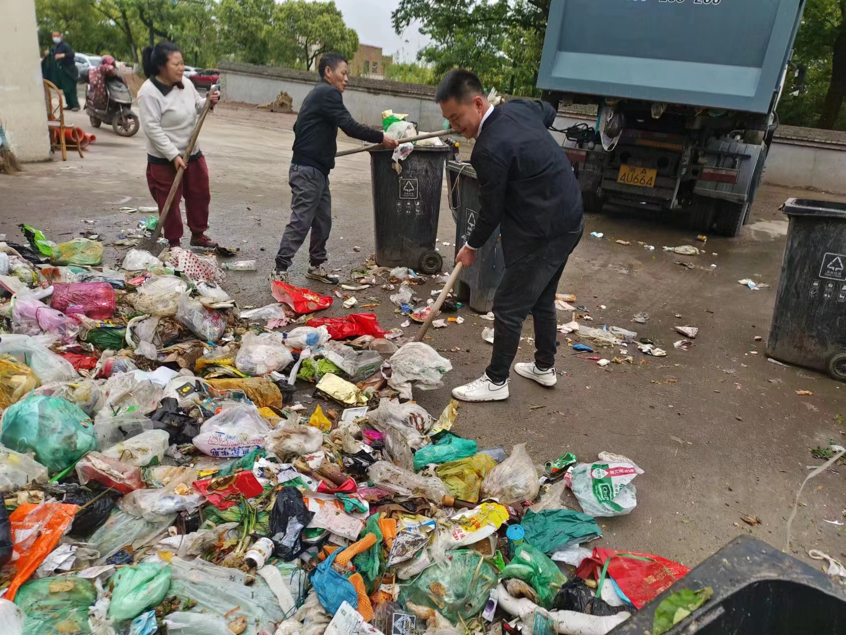 4月24日16:00,公司員工朱顏飛在對(duì)管理文化村的垃圾站進(jìn)行檢查時(shí),遇到在小區(qū)做保姆阿姨的求助,稱不慎將業(yè)主的一份十分重要的文件丟進(jìn)了垃圾桶,而垃圾可能被轉(zhuǎn)運(yùn)到了該垃圾站。