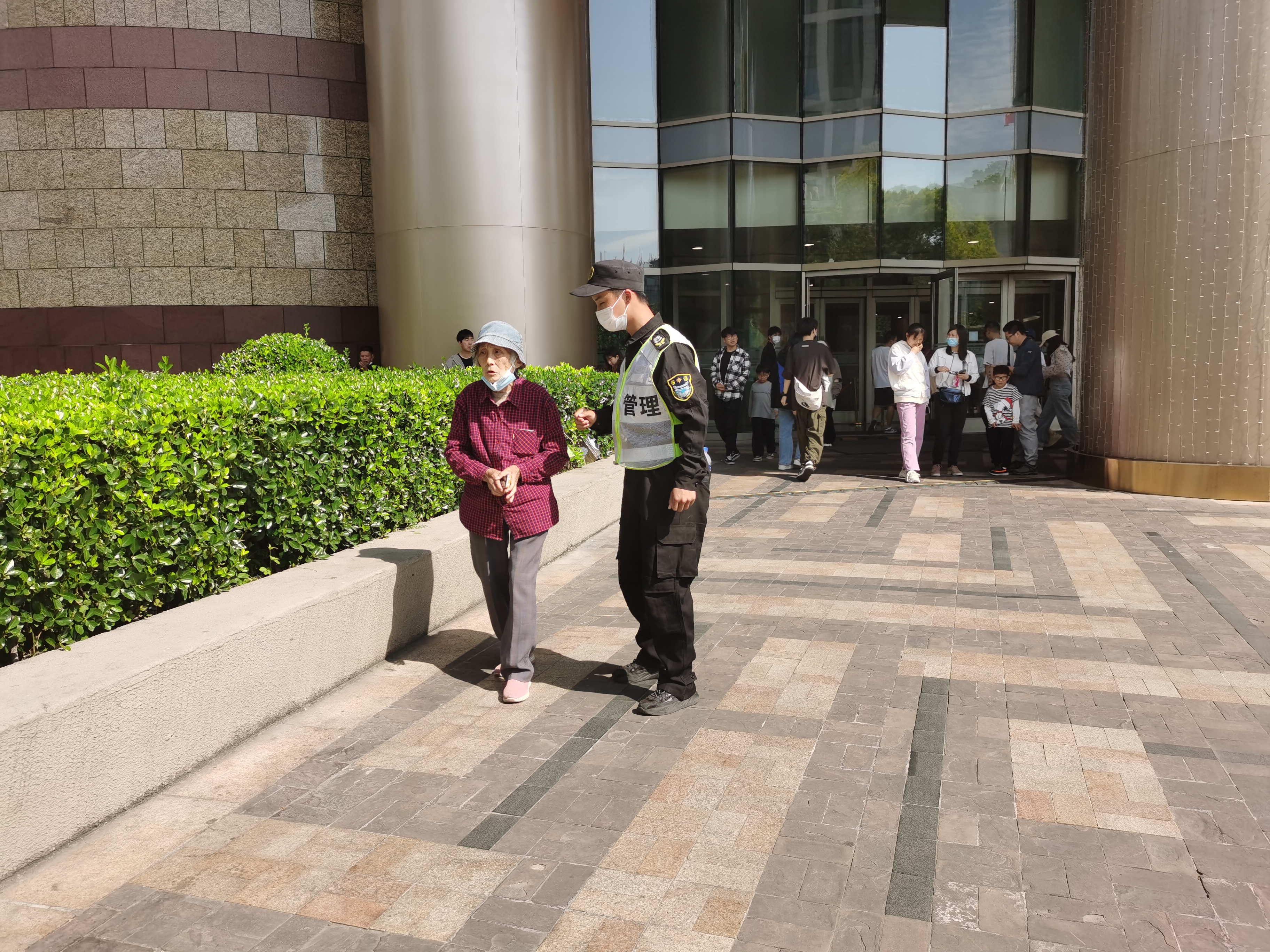 當(dāng)天10:00,公司員工李一帆在正大廣場(chǎng)西北門值勤時(shí),遇到一位80多歲老人的求助,稱其與家人出來(lái)游玩,一轉(zhuǎn)眼找不到他們了,心里十分焦急。