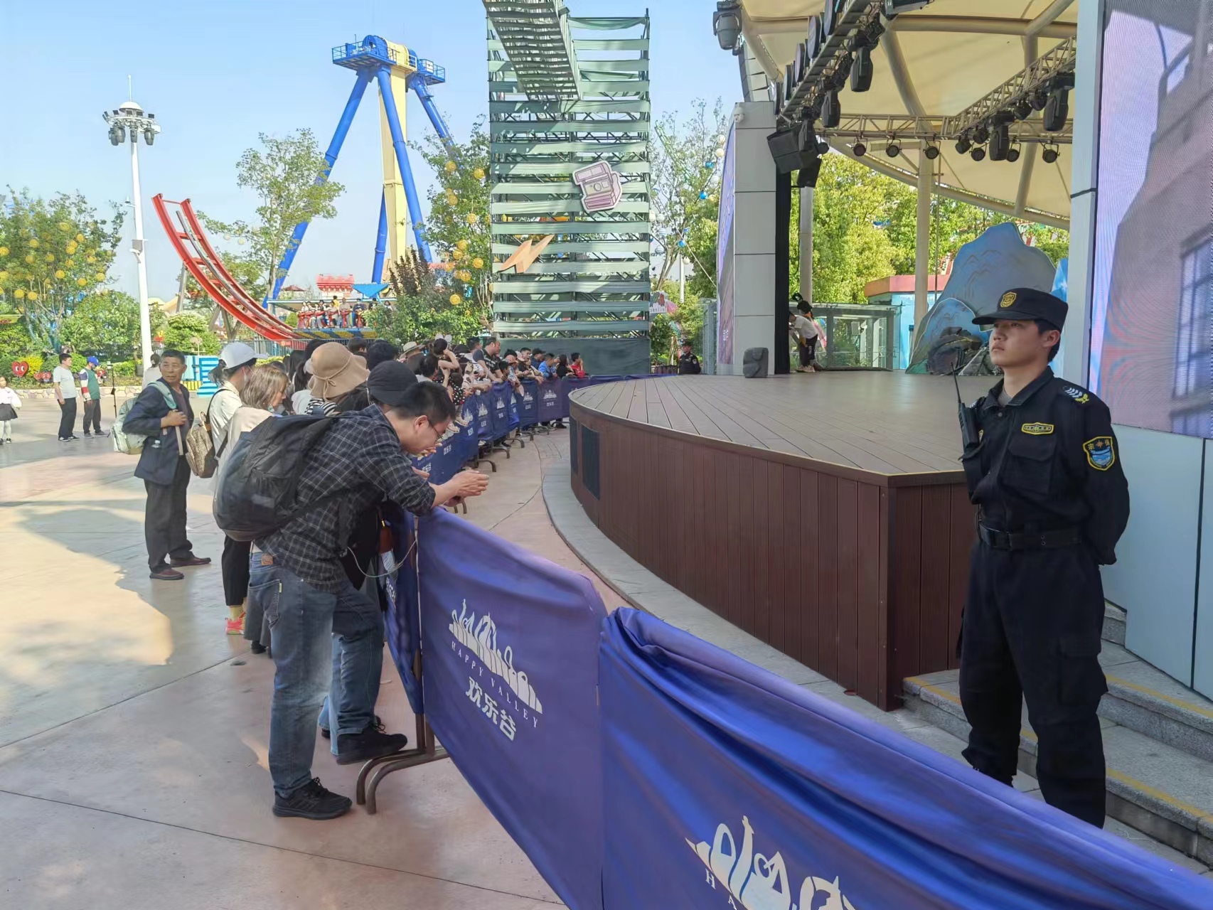 “五一”小長假期間,南京歡樂谷游客如織。為保障景區(qū)安全有序運(yùn)行,宗保公司按照歡樂谷的部署要求,精心組織,周密安排,預(yù)判游客人流,制定應(yīng)急預(yù)案,全力協(xié)助甲方做好各項安保秩序維護(hù)工作。