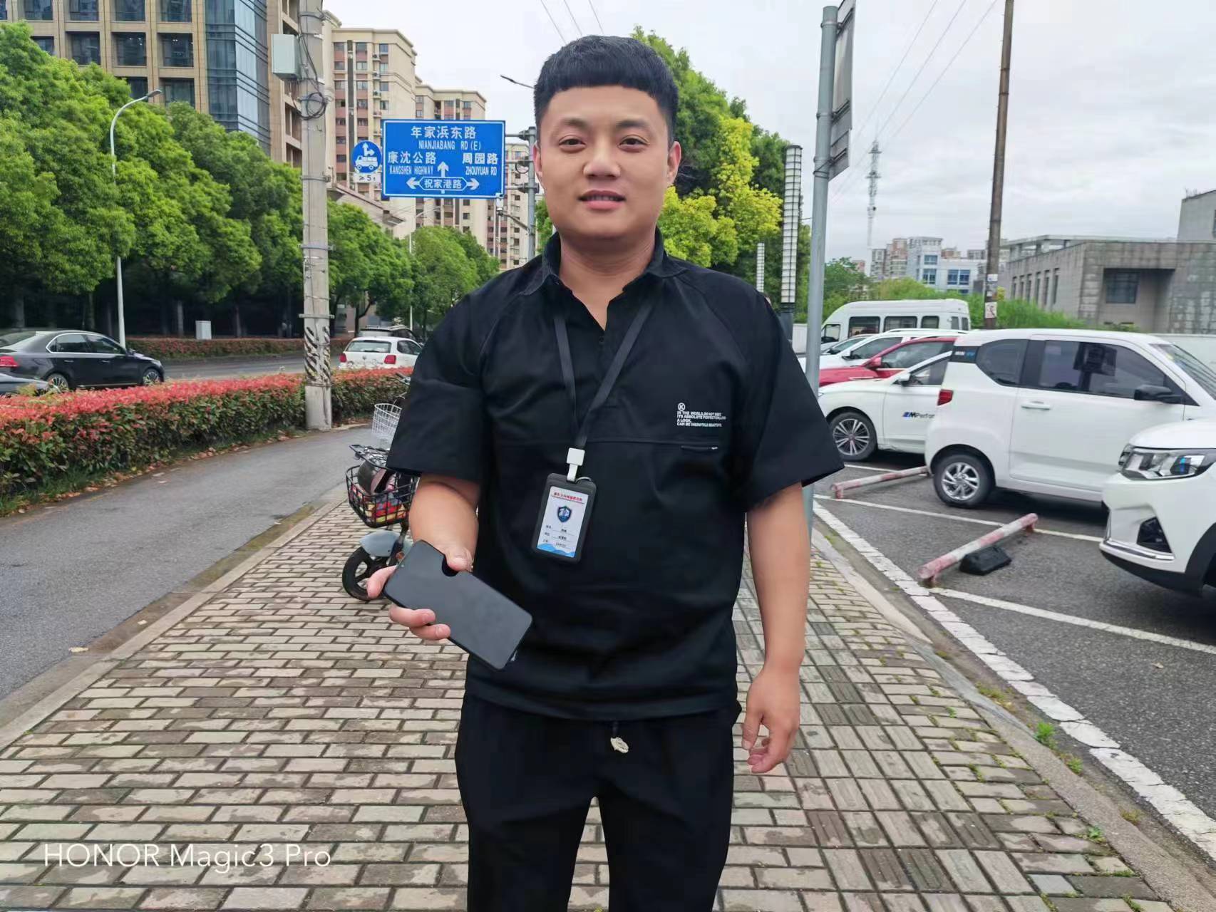 當(dāng)日6:20,公司員工陳鎮(zhèn)在昌運(yùn)里儲(chǔ)運(yùn)路值勤時(shí),撿到一部黑色華為P40手機(jī),詢問(wèn)周圍人員無(wú)人認(rèn)領(lǐng)后,便將情況報(bào)告了項(xiàng)目負(fù)責(zé)人,并按指示邊值勤邊留意尋找物品的人。