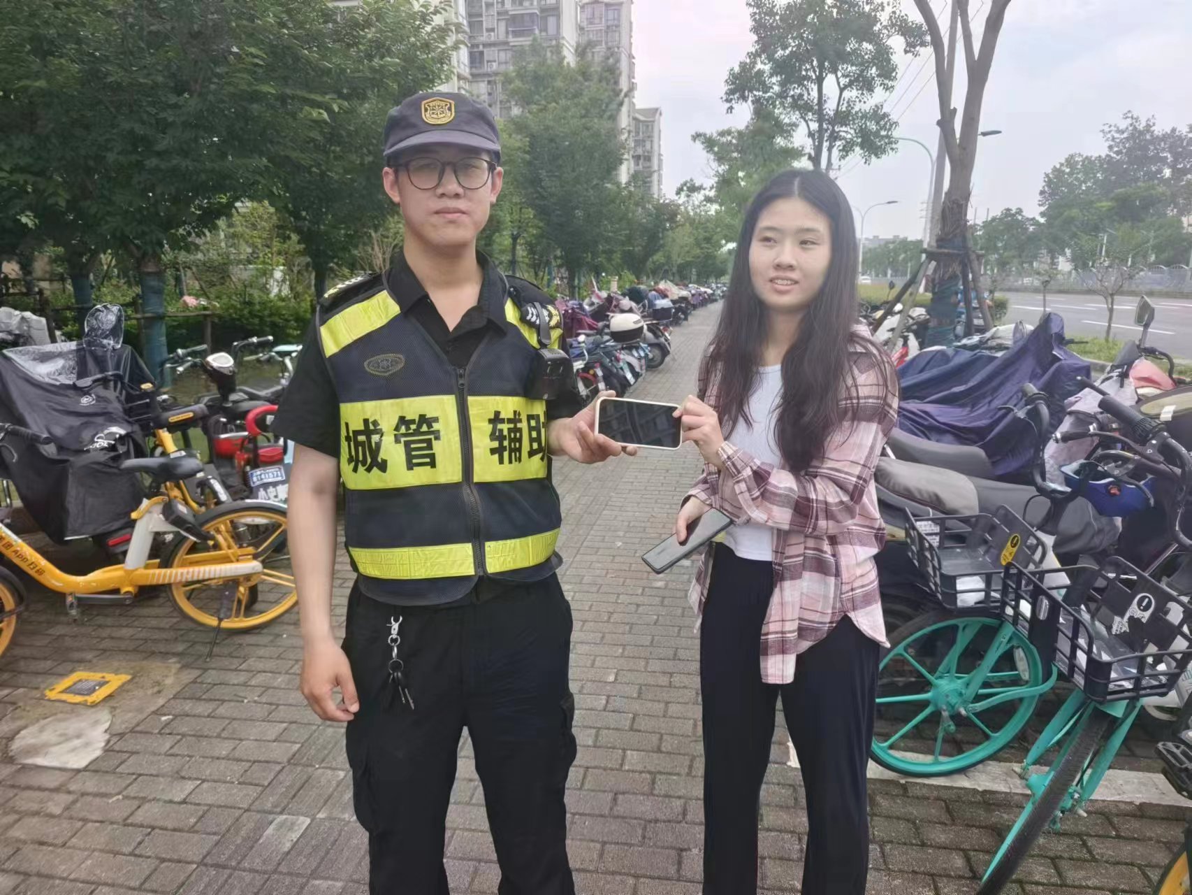 7月17日6:45 ,宗保公司駐浦東新區(qū)陸家嘴社區(qū)市容項目員工王建軍在招遠路小石橋路路口整理亂停放非機動車時,在一輛共享單車的車筐里發(fā)現(xiàn)一臺華為平板電腦。考慮到失主丟失貴重物品,可能會返回尋找,王建軍便在原地等待。大約過了15分鐘,仍不見失主前來認領(lǐng),王建軍便將平板電腦上交到城管中隊嶗山工作站,受到了工作站領(lǐng)導的肯定。當日13:00左右,聞訊前來認領(lǐng)電腦的失主,對宗保員工拾金不昧的行為再三表示感謝.