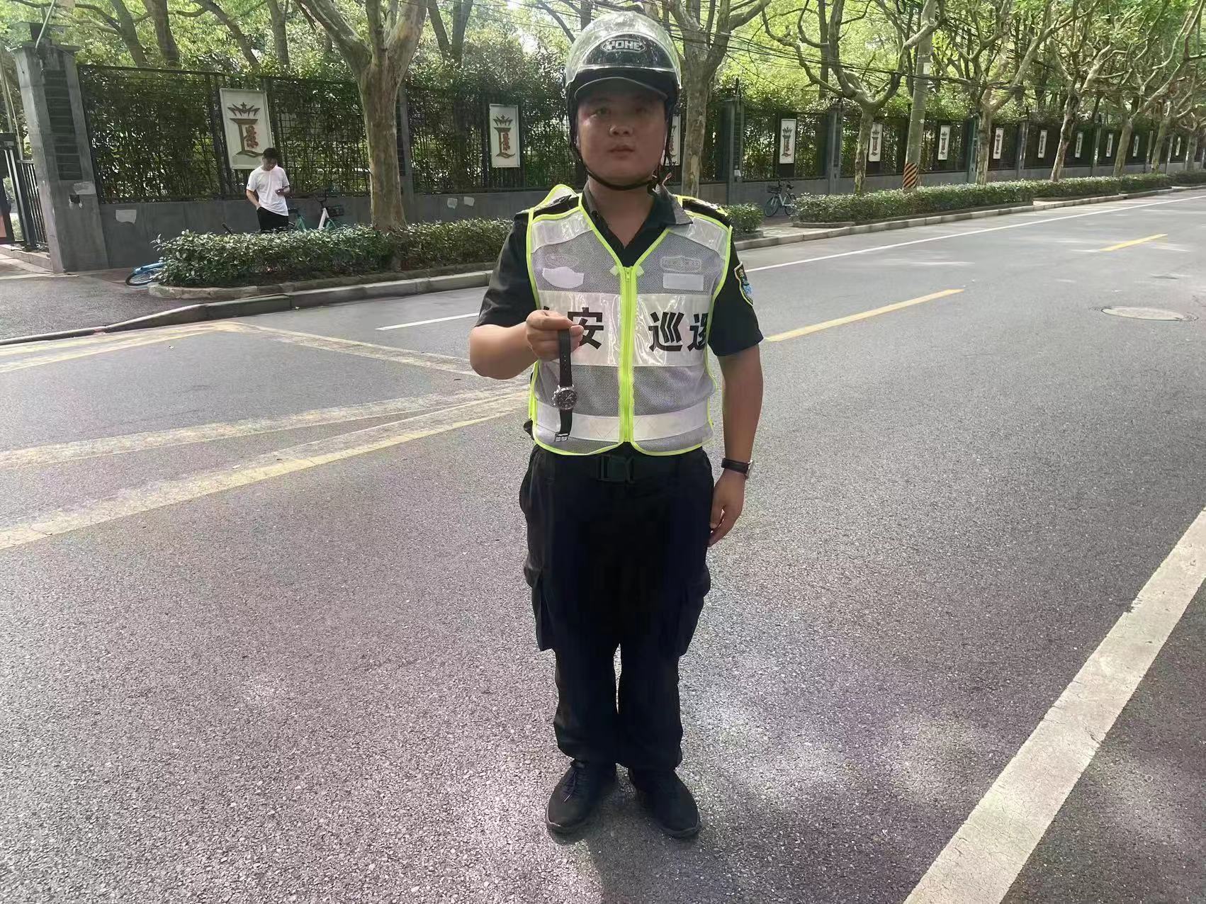 7月10日8:30,宗保公司駐浦東新區(qū)洋涇派出所輔助項目員工王歡剛在張揚路1811弄中星海上景庭巡邏時,撿到一塊男士蔻馳石英手表。王歡剛在原地等待20多分鐘后,未見失主前來尋找,便將情況報告了洋涇派出所,并將手表上交派出所值班民警。