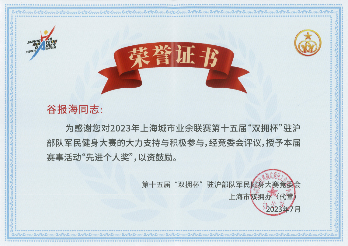 中國(guó)人民解放軍建軍96周年之際,為進(jìn)一步踐行習(xí)總書(shū)記關(guān)于雙擁工作和體育工作的重要論述,以黨的二十大精神為指導(dǎo),由市擁軍優(yōu)屬擁政愛(ài)民工作領(lǐng)導(dǎo)小組辦公室、上海警備區(qū)政治工作局、市體育局、市擁軍優(yōu)屬基金會(huì)主辦的以“牢記使命礪精兵,健身強(qiáng)軍爭(zhēng)第一”為主題的第十五屆“雙擁杯”駐滬部隊(duì)軍民健身大賽,于6月27日至7月9日在軍地各單位駐地陸續(xù)展開(kāi),宗保公司作為退役軍人創(chuàng)辦企業(yè)參加大賽。