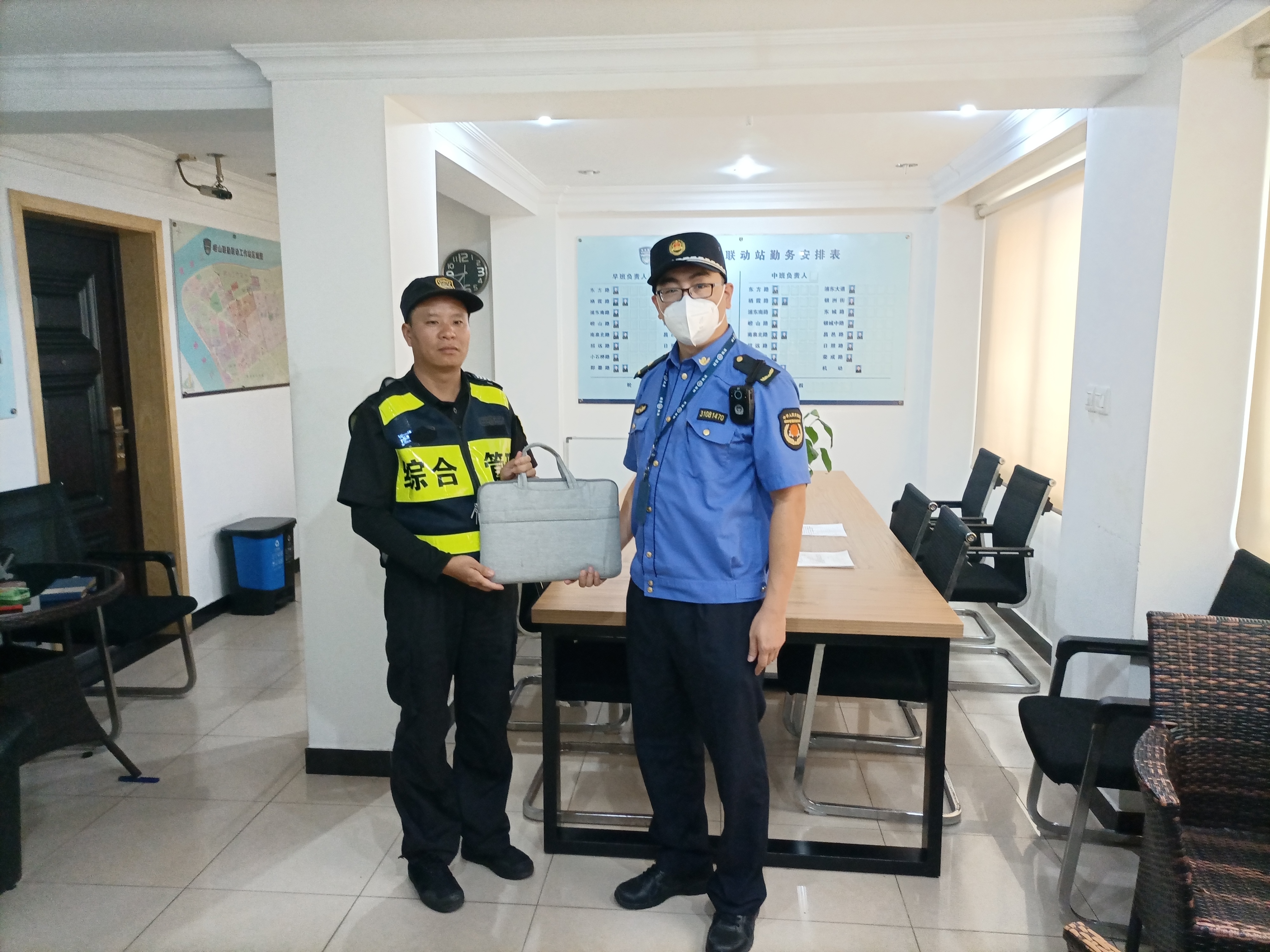 7月19日8:10,宗保公司駐浦東新區(qū)陸家嘴社區(qū)市容項(xiàng)目員工權(quán)小濤在南泉北路170號整理亂停放非機(jī)動車時,在一輛共享單車的車框里發(fā)現(xiàn)一臺聯(lián)想筆記本電腦。考慮到失主丟失貴重物品,可能會返回尋找,權(quán)小濤便在原地等待。大概過了10分鐘,仍無人前來認(rèn)領(lǐng),權(quán)小濤就將情況報告了班組長,并按指示將電腦上交城管中隊(duì)。8:40左右,一女子前來詢問仍在序化管理的權(quán)小濤,是否撿到一臺筆記本電腦,其描述的筆記本電腦品牌、外觀等信息,與權(quán)小濤撿到的電腦的特征基本一致。于是,權(quán)小濤將她帶至城管中隊(duì),解鎖電腦開機(jī)密碼確認(rèn)女子是失主后,就將電腦交還給了她。女子接過電腦,再三向宗保員工權(quán)小濤道謝。