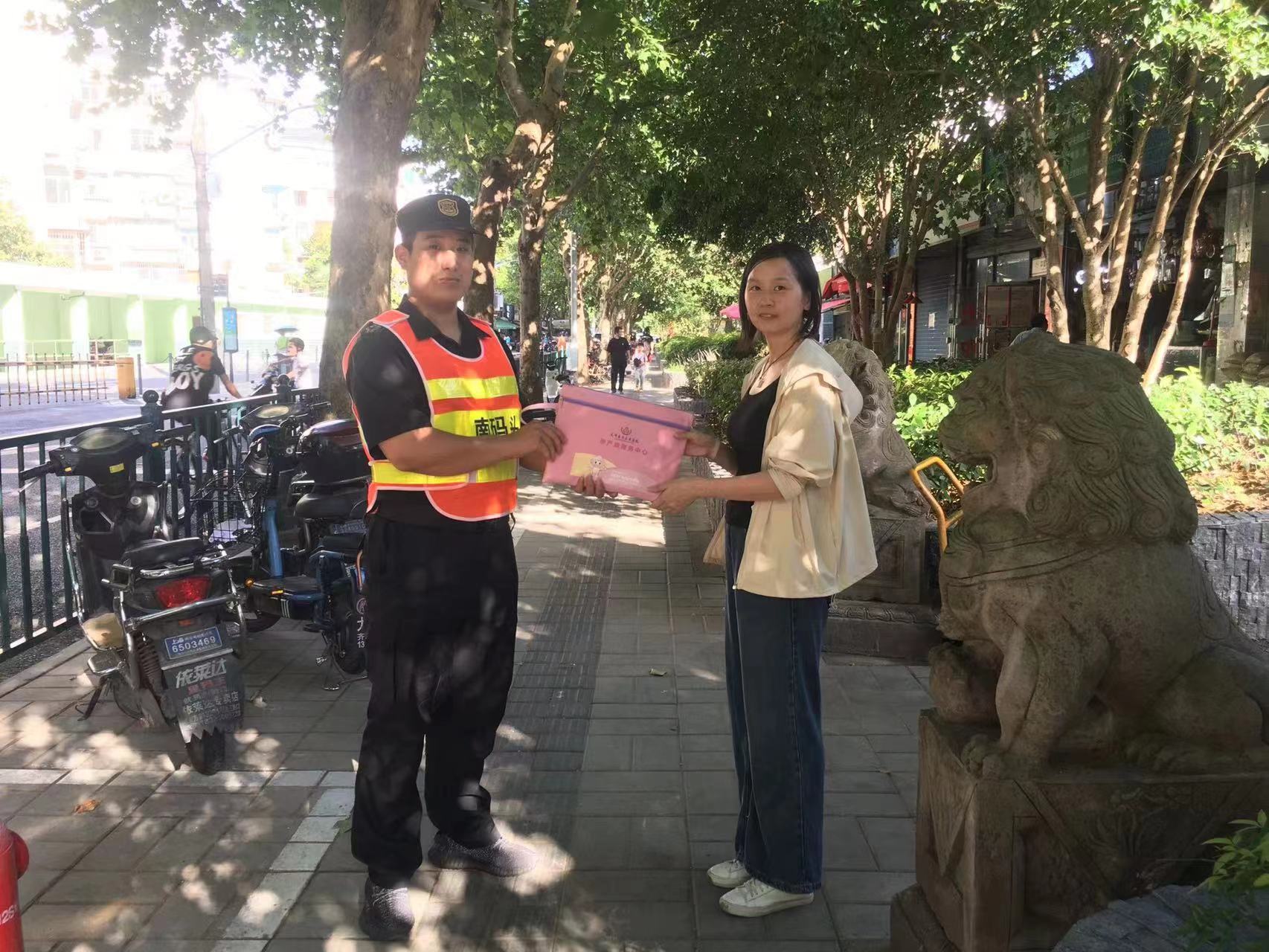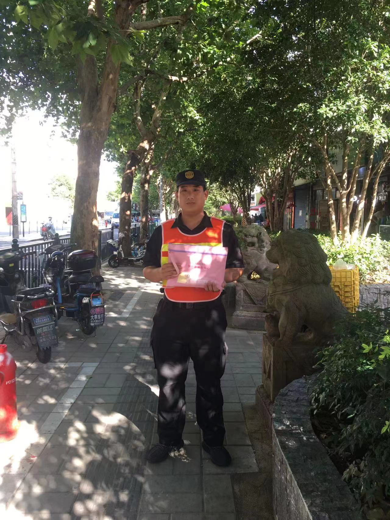 7月25日16:00,宗保公司駐浦東新區(qū)南碼頭市容項(xiàng)目員工馬星啟在蘭陵路菜場值勤時,在一輛共享單車的車筐里發(fā)現(xiàn)一個粉紅色文件包。為找到失主的聯(lián)系方式,馬星啟打開包查看,包內(nèi)有銀行卡、身份證、醫(yī)保卡、孕婦產(chǎn)檢單和銀色手鐲等物品,產(chǎn)檢單據(jù)上還留有一個手機(jī)號碼。馬星啟趕緊撥打過去說明情況,這時對方才知道自己的文件包丟了。大約過了10分鐘,一女子按照約定趕到現(xiàn)場,馬星啟核實(shí)好信息就把文件包交還給了她。女子拿到文件包后,連連向宗保員工道謝,并為其認(rèn)真負(fù)責(zé)的工作態(tài)度點(diǎn)贊。