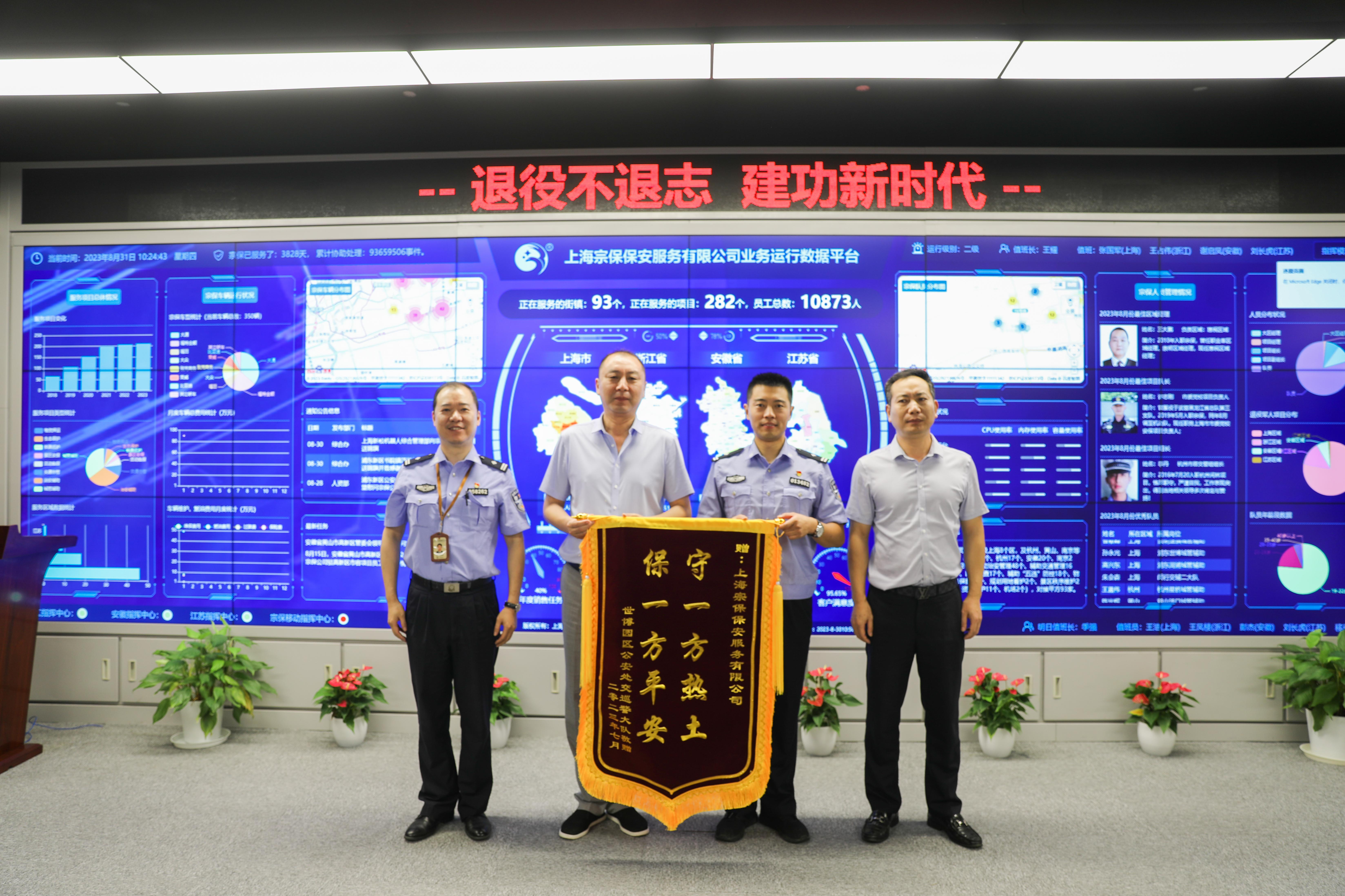 8月31日,浦東新區(qū)公安分局世博園區(qū)公安處交巡警大隊(duì)將一面繡有“守一方熱土 保一方平安”的錦旗和一封感謝信送到宗保公司董事長王耀的手中,感謝公司對(duì)交巡警大隊(duì)工作的大力支持。