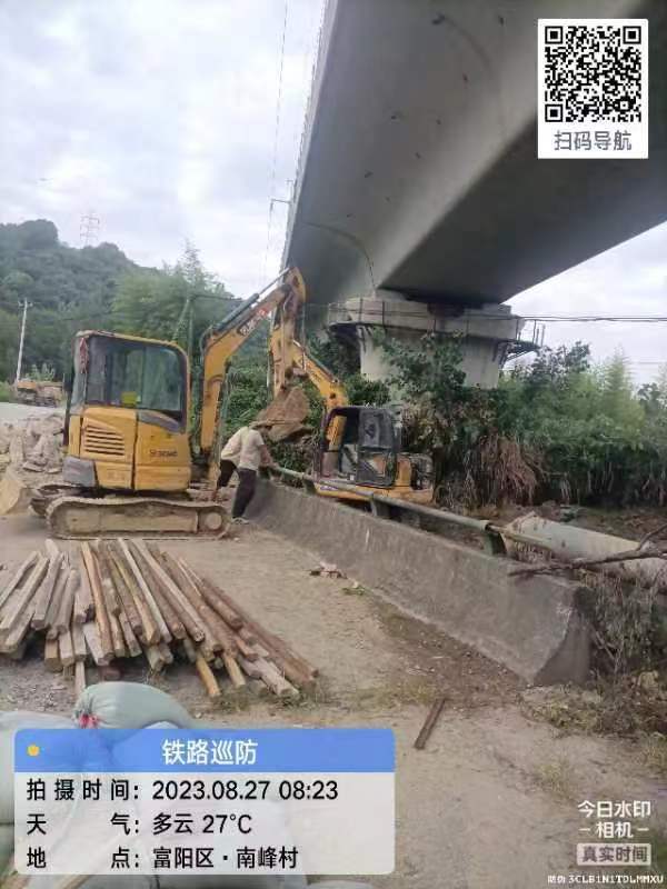 當(dāng)日8:23,公司員工王文華巡查富陽站至桐廬站區(qū)間山坎特大橋k52+017線路時(shí),發(fā)現(xiàn)有挖掘機(jī)正在鐵路橋邊紅線區(qū)域內(nèi)作業(yè),涉嫌非法施工。王文華立即跑上前制止,并第一時(shí)間將情況報(bào)告杭州工務(wù)段桐廬車間、杭州鐵路公安處桐廬鐵路派出所。