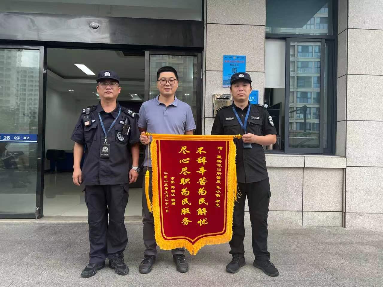 9月21日,浙江民泰公司駐杭州市臨平區(qū)星橋派出所輔助項(xiàng)目員工收到市民鄭先生送來(lái)的繡有“不辭辛苦為民解憂(yōu) 盡心盡職為民服務(wù)”的錦旗,感謝公司員工宋亮和朱小萌盡心為民幫助其找到了走失的母親。