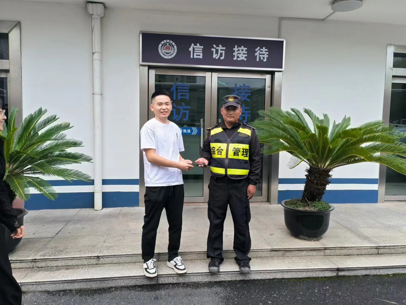 10月8日13:30,宗保公司駐浦東新區(qū)周浦市容項(xiàng)目員工賈勝輝在周秀路巡查時(shí),撿到一部華為手機(jī)。因手機(jī)設(shè)有鎖屏密碼,一時(shí)無(wú)法聯(lián)系到失主,賈勝輝報(bào)告班組長(zhǎng)后便在原地等待失主。大約過(guò)了10多分鐘,一男子打來(lái)電話自稱是失主,賈勝輝了解情況后,就與他約好在周浦鎮(zhèn)城管執(zhí)法中隊(duì)碰面。很快,男子趕到約定地點(diǎn),成功地解開(kāi)了鎖屏密碼。賈勝輝確認(rèn)男子是失主后,將手機(jī)交還給了他。男子拿著手機(jī)連連向賈勝輝道謝,并特意撥打了12345上海市民熱線,贊揚(yáng)宗保公司駐周浦市容項(xiàng)目員工賈勝輝拾金不昧的行為。