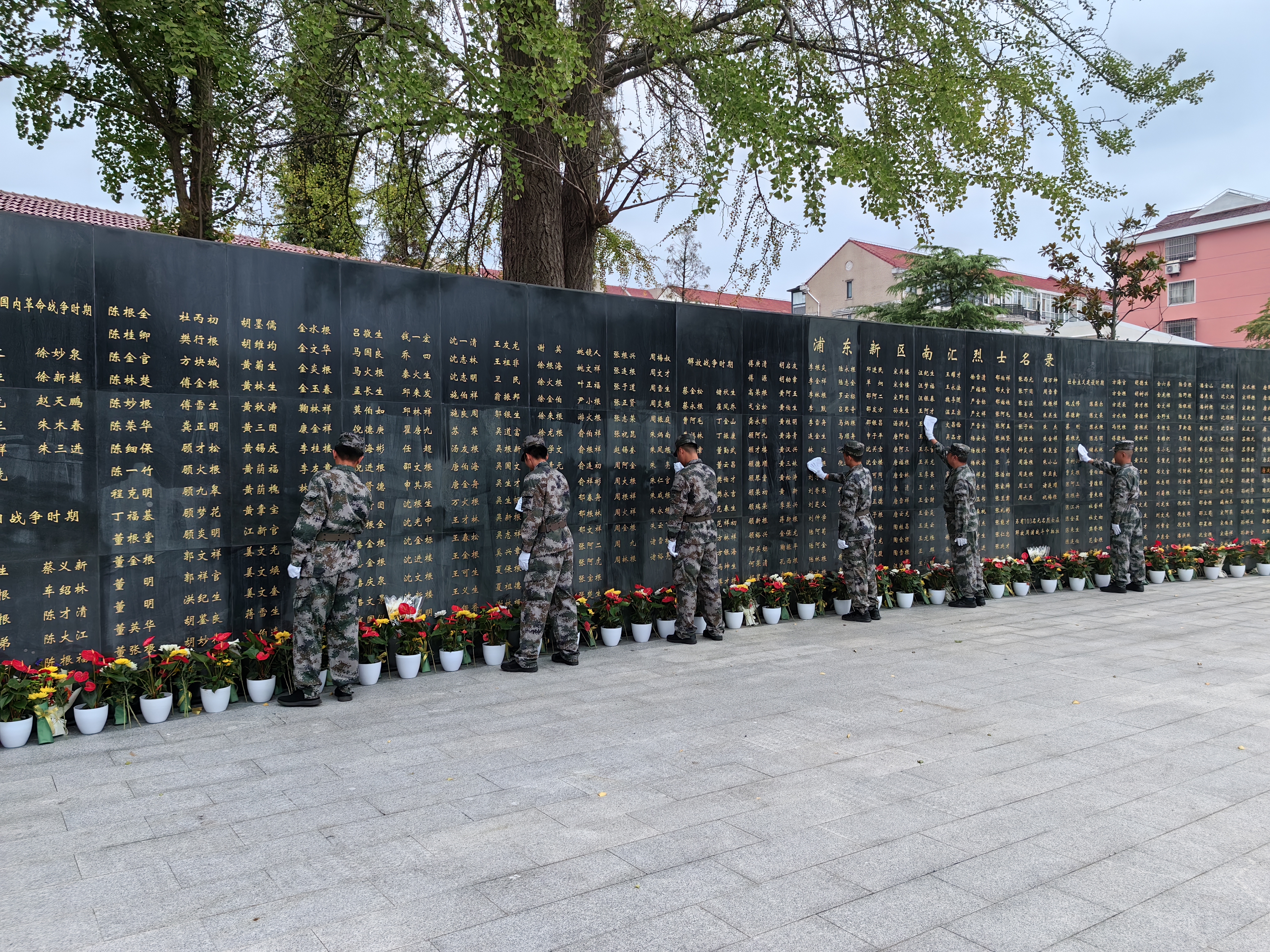 上午9時30分,上海烈士紀(jì)念設(shè)施守護(hù)崇敬志愿服務(wù)隊浦東區(qū)隊志愿者來到南匯烈士陵園,整齊肅立在烈士紀(jì)念碑前,向烈士紀(jì)念碑默哀鞠躬、敬獻(xiàn)花籃,表達(dá)對烈士的無限哀思與崇敬。