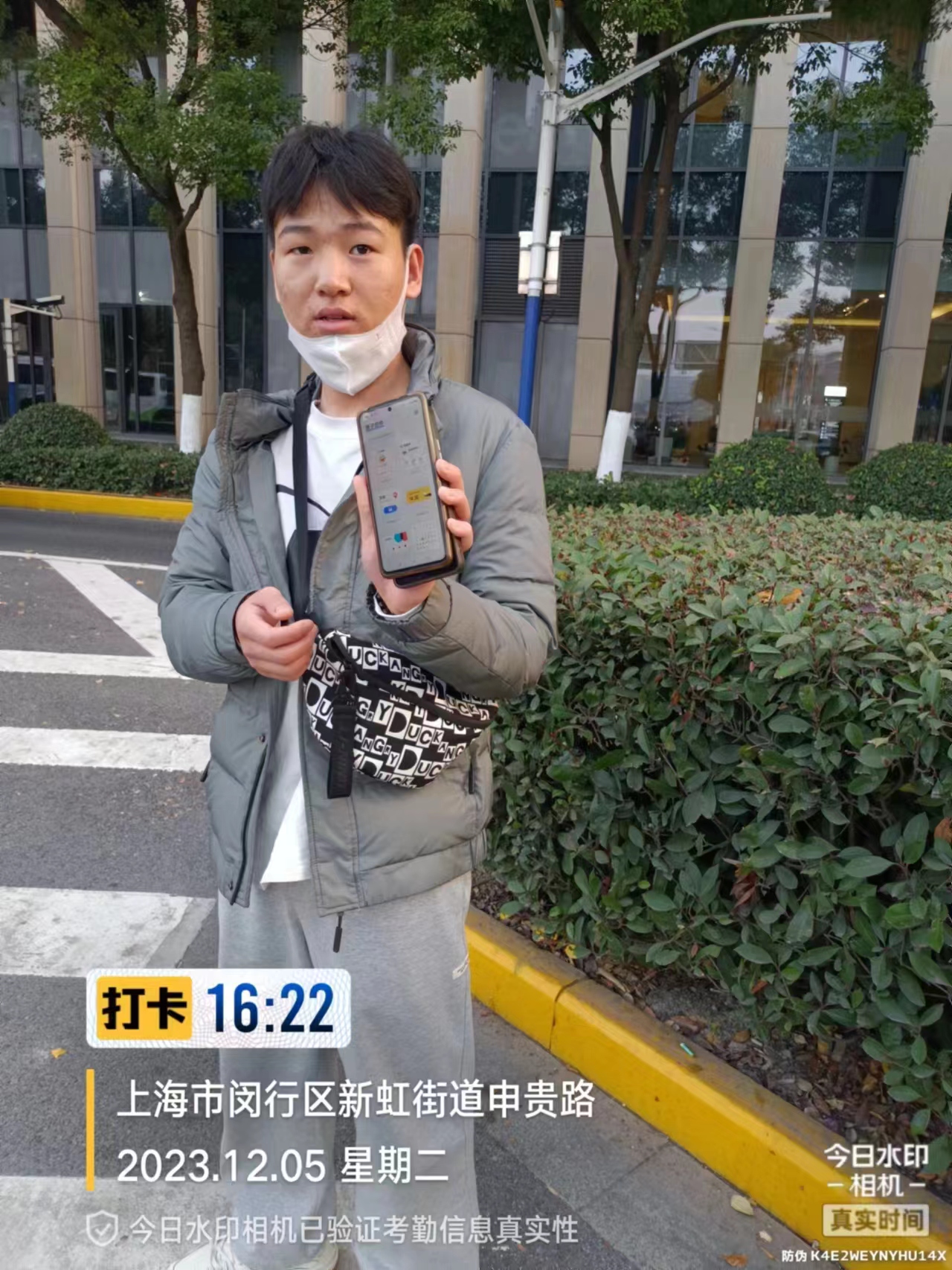 12月5日16:22,宗保公司駐閔行區(qū)新虹街道項目員工郭敬瀟在虹橋樞紐申虹路甬虹路附近值勤時,撿到一部華為手機 ,報告班組長后便在原地等待。過了15分鐘左右,一男子打來電話尋找手機,語氣顯得很急切。郭敬瀟一邊安慰男子,一邊與其約好碰面的時間地點。不一會兒,一位身穿灰色外套的男子來到約定地點認(rèn)領(lǐng)手機。郭敬瀟確認(rèn)其是失主后,將手機交還給了他。男子拿著失而復(fù)得的手機,連連向公司員工郭敬瀟表示感謝。
