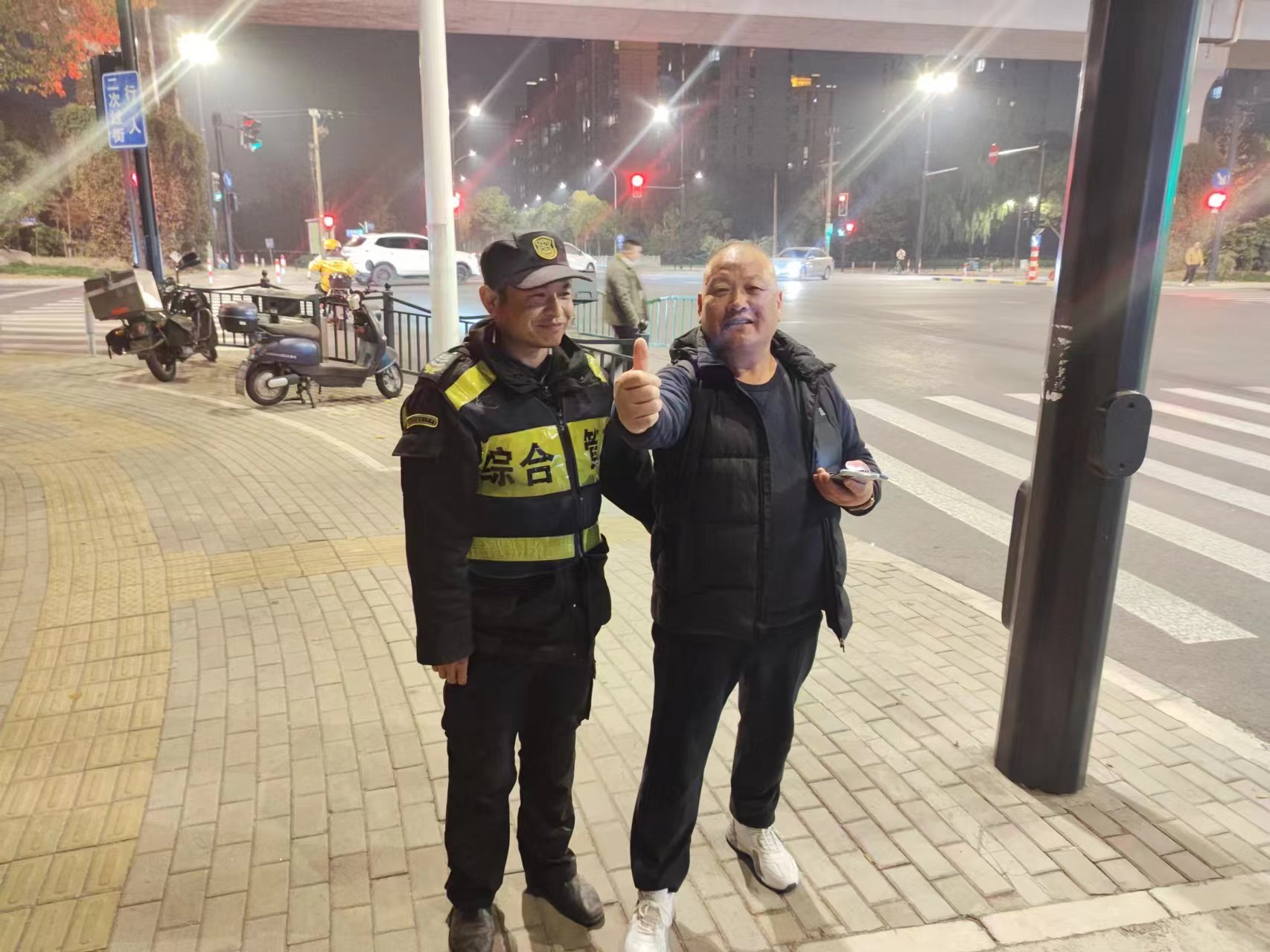12月16日16:35,浙江民泰公司駐杭州市臨平區(qū)運河街道運河交管輔助項目員工李念念在寧橋大道值勤時,撿到一部華為手機。李念念仔細(xì)檢查發(fā)現(xiàn)手機沒有設(shè)置鎖屏密碼,便查詢到標(biāo)注為兒子的聯(lián)系人,并撥通了其電話。不一會兒,一位頭發(fā)花白的老人騎著自行車趕到現(xiàn)場,經(jīng)核實確認(rèn)老人是失主后,李念念就將手機交還給了他。