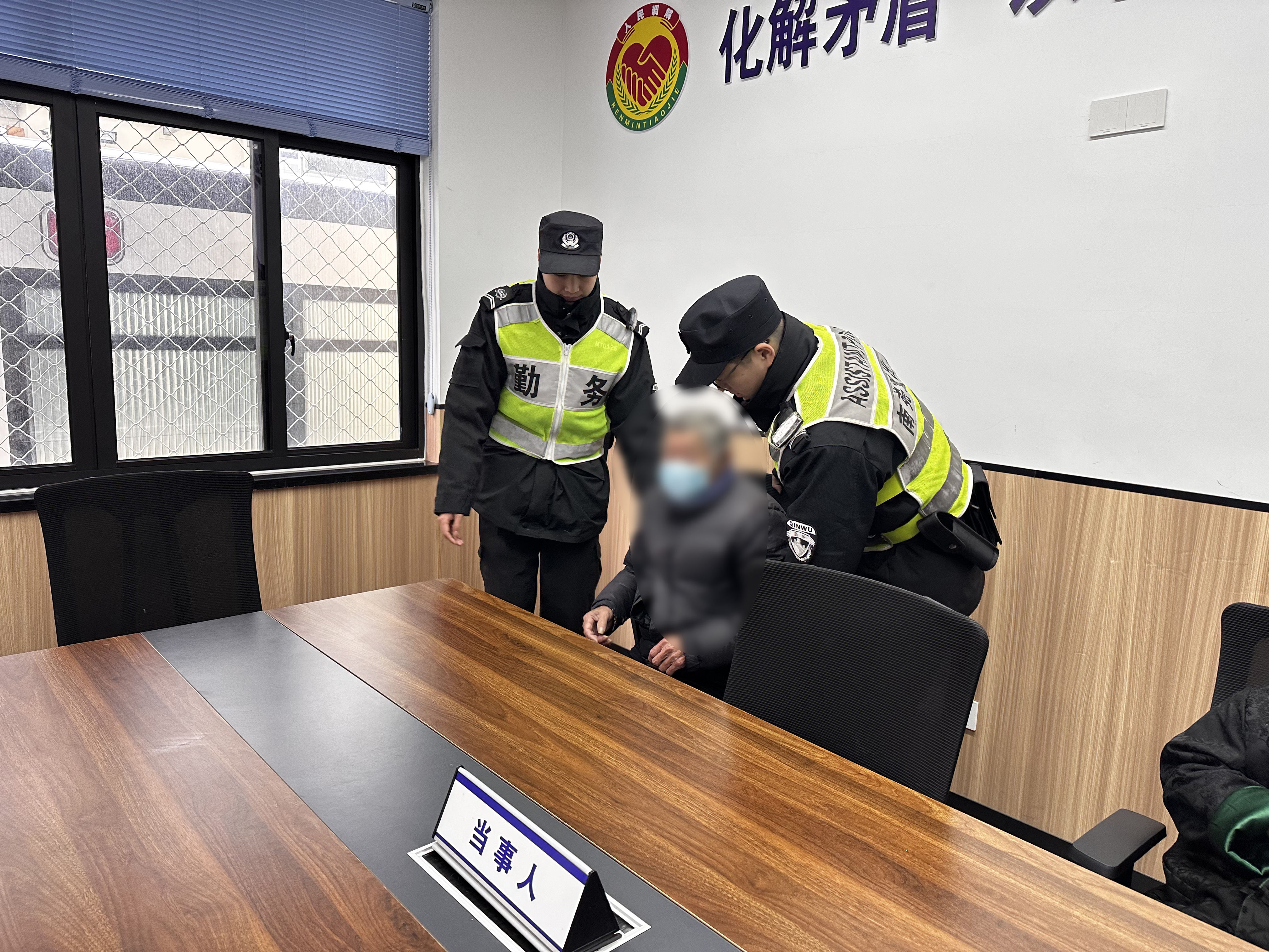 老人稱自己找不到回家的路,也不記得家里住址和家人的聯(lián)系電話。因天氣寒冷,老人凍得瑟瑟發(fā)抖,耿天龍趕緊將老人攙扶到車上取暖。同時(shí),朱孟培將情況報(bào)告派出所值班室,并按指示先將老人帶到派出所。
