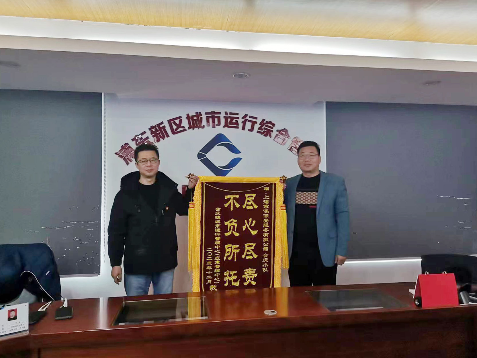 宗保公司收到浦東新區(qū)合慶鎮(zhèn)城市運行管理中心贈送的錦旗