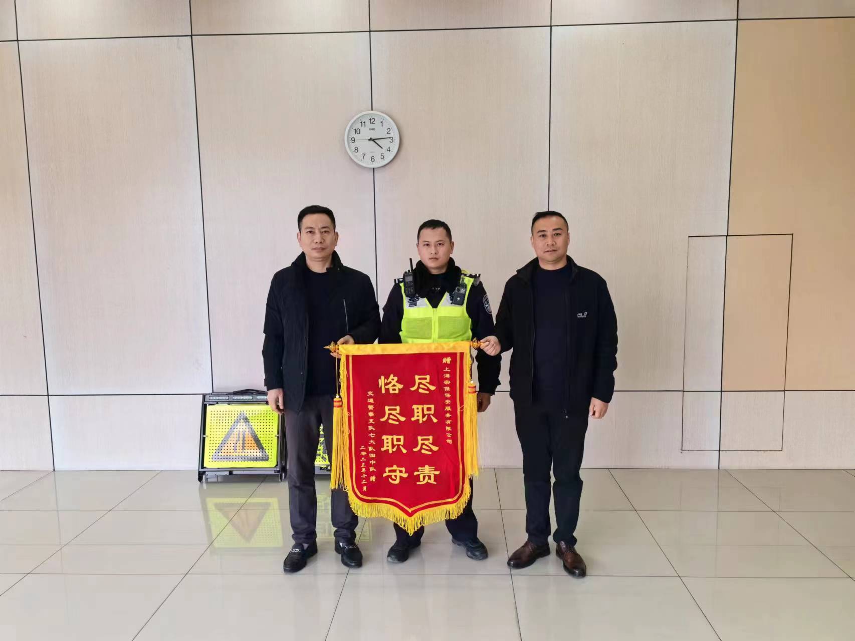 1月2日,宗保公司收到浦東交通警察支隊七大隊四中隊送來的繡有“盡職盡責(zé) 恪盡職守”的錦旗,贊揚公司項目員工在協(xié)助交通警察做好道路交通疏導(dǎo)、進(jìn)行交通秩序維護(hù)、開展交通法規(guī)宣傳等工作中的出色表現(xiàn)。