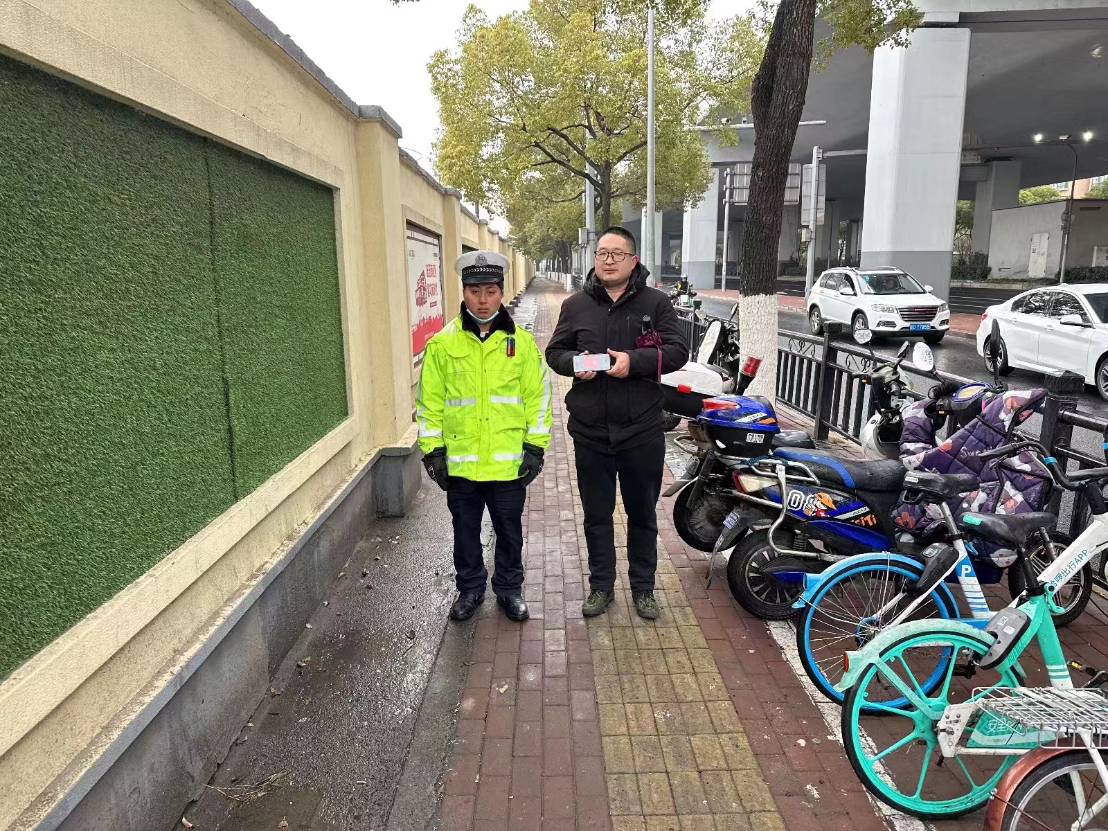 1月30日8:50,宗保公司駐閔行區(qū)華漕護(hù)校項目員工阿克補(bǔ)萬在北翟路南華街路交叉口值勤時,撿到一部OPPO手機(jī),詢問四周人員無果后,隨即將情況報告了項目負(fù)責(zé)人,并按指示留在原地等待失主。大約過了20分鐘,一男子打來電話尋找手機(jī),阿克補(bǔ)萬便與男子約好碰面時間地點(diǎn)。很快,一位身穿黑色外套的男子趕到現(xiàn)場,經(jīng)核實確認(rèn)其是失主后,阿克補(bǔ)萬將手機(jī)交還給了他。男子拿著手機(jī)十分高興,連連向宗保員工道謝。