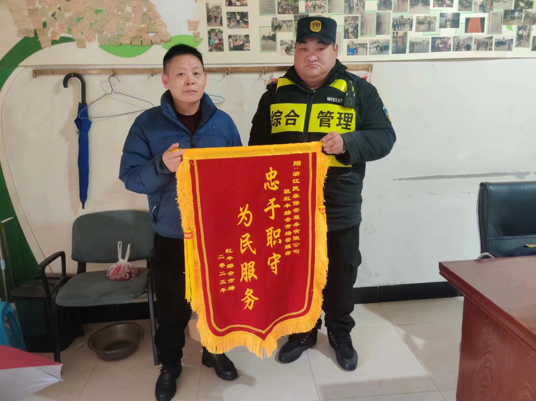 2月1日,浙江民泰公司駐杭州市臨平區(qū)東湖市容項(xiàng)目收到東湖街道紅豐綜合市場(chǎng)送來(lái)的繡有“忠于職守 為民服務(wù)”的錦旗,贊揚(yáng)公司全力協(xié)助紅豐綜合市場(chǎng)有序管理轄區(qū)非機(jī)動(dòng)車(chē)輛,積極配合開(kāi)展轄區(qū)環(huán)境衛(wèi)生整治,表?yè)P(yáng)公司員工在輔助紅豐綜合市場(chǎng)開(kāi)展工作中勤勉敬業(yè)、恪盡職守的出色表現(xiàn)。