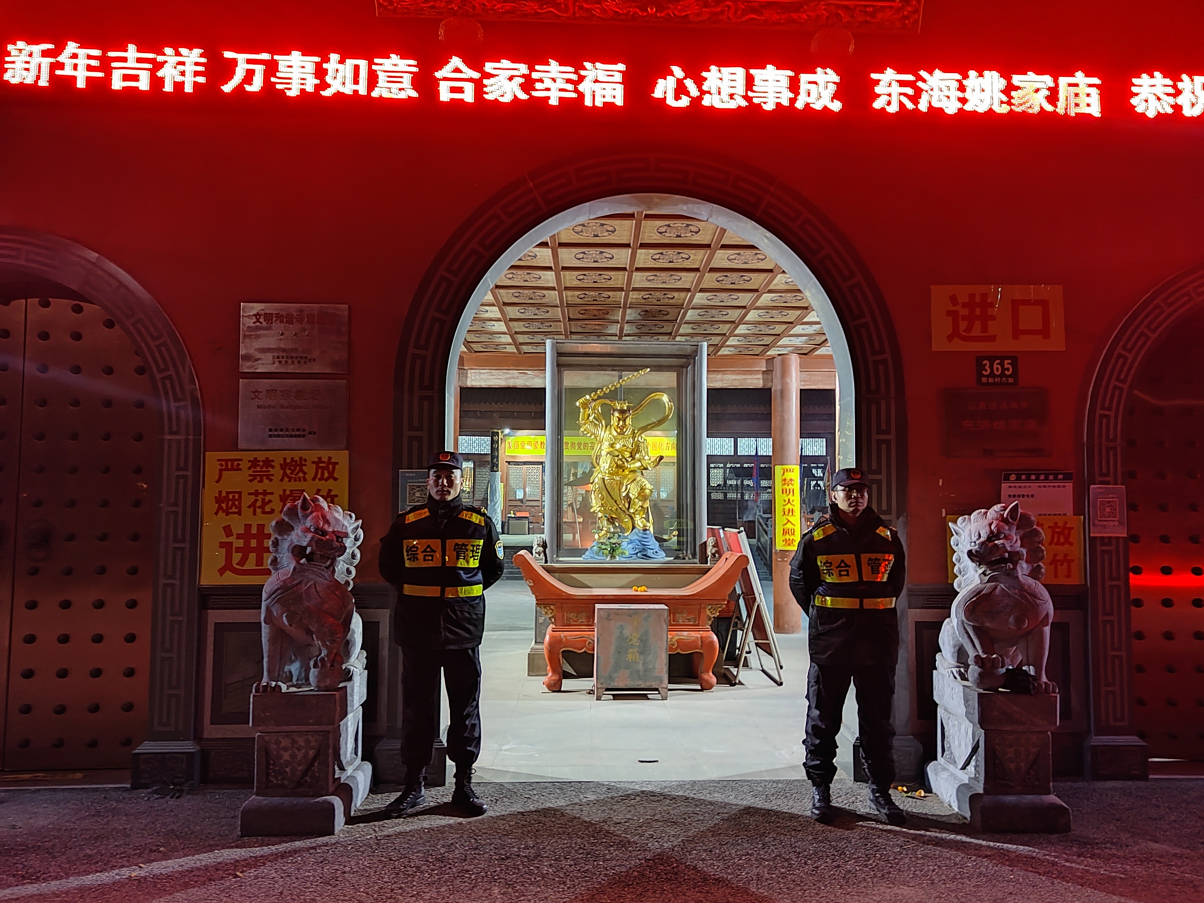 公司受領(lǐng)節(jié)日安保任務(wù)后,根據(jù)有關(guān)單位的統(tǒng)一部署,按照安保工作要求,結(jié)合公司在崗在位員工實(shí)際,制定安保工作方案,開展崗前動(dòng)員學(xué)習(xí),明確任務(wù)職責(zé)分工,全力以赴配合做好除夕夜寺廟敬香祈福、大客流引導(dǎo)疏散、景區(qū)秩序維護(hù)等工作。