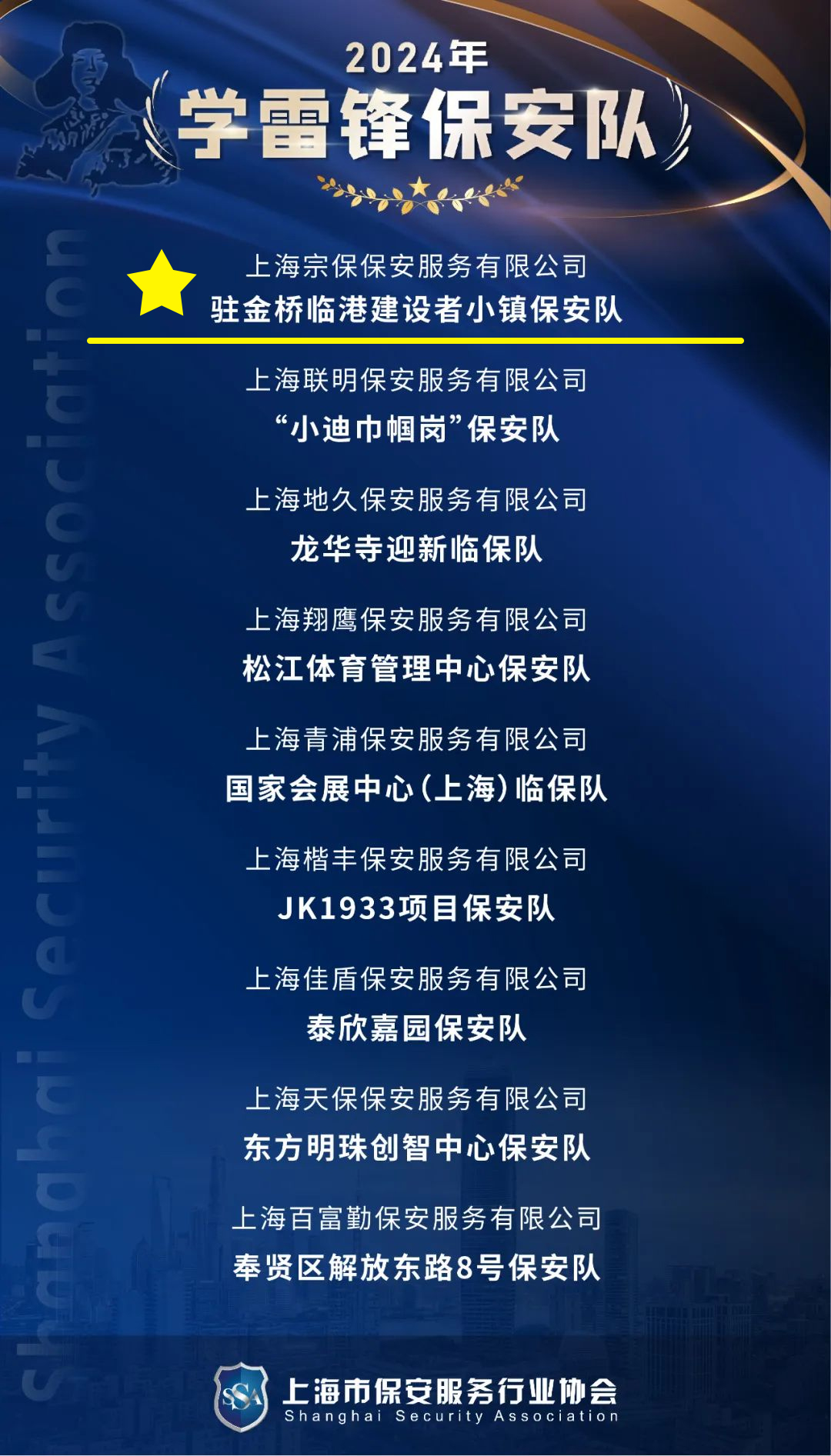公司駐金橋臨港建設(shè)者小鎮(zhèn)保安隊(duì)被評(píng)為“學(xué)雷鋒保安隊(duì)”