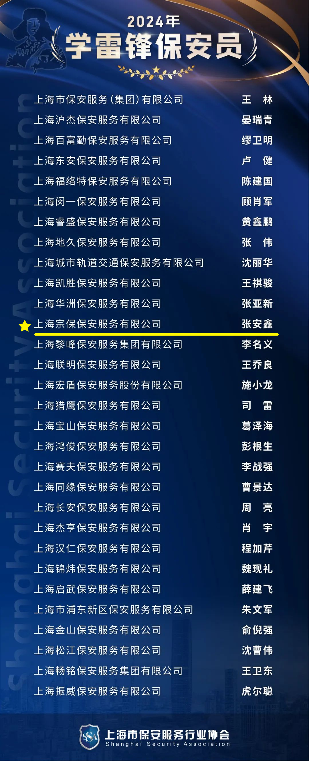 近日,上海市保安服務(wù)行業(yè)協(xié)會(huì)公布了“學(xué)雷鋒保安隊(duì)”“學(xué)雷鋒保安員”“巾幗保安員”評(píng)選結(jié)果,宗保公司1個(gè)項(xiàng)目隊(duì)和3名員工分獲殊榮。