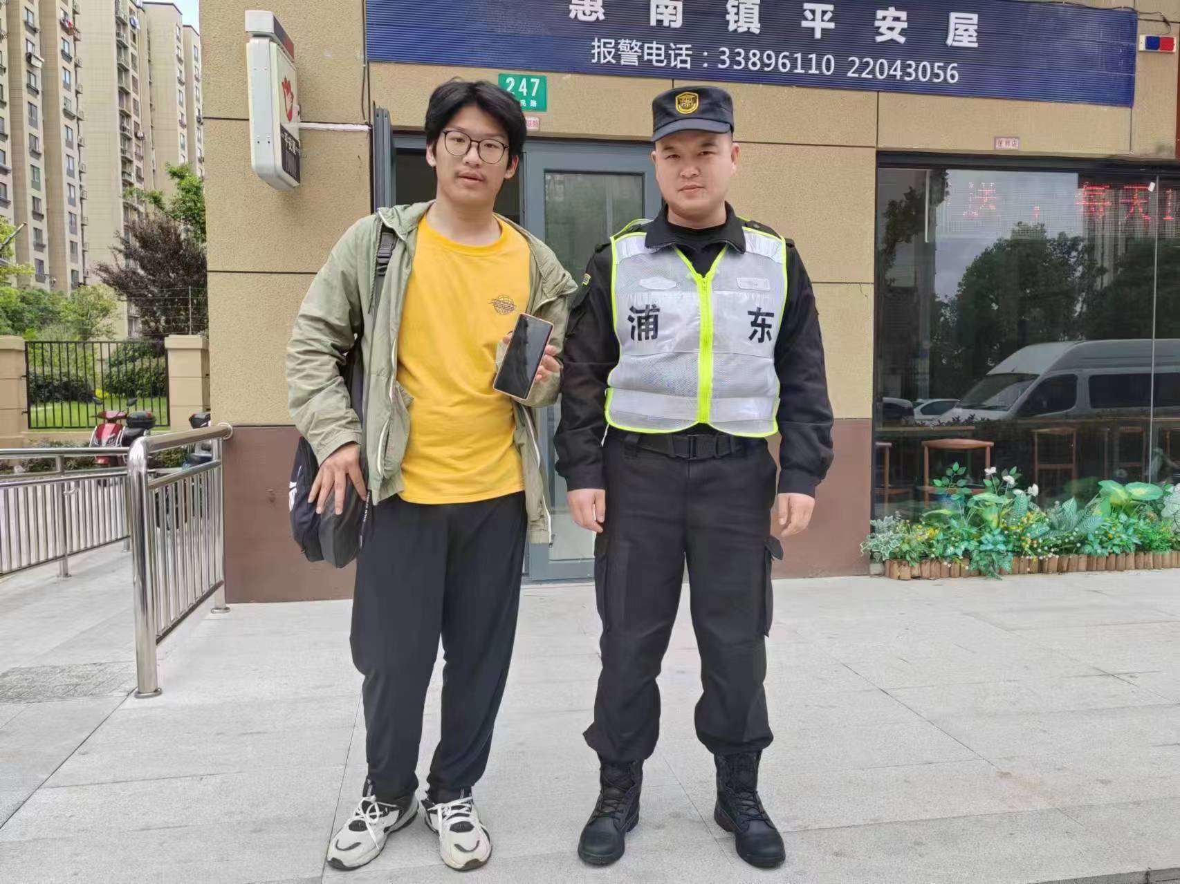 5月2日13:35,宗保公司駐浦東新區(qū)惠南鎮(zhèn)民樂派出所輔助項(xiàng)目員工徐公源和吳志超在聽達(dá)路拱優(yōu)路西側(cè)巡邏時(shí),撿到一部vivo手機(jī),報(bào)告組長(zhǎng)后便在原地邊執(zhí)勤邊等待失主。大概過了十幾分鐘,一位自稱是失主的男子打來(lái)電話,徐公源了解情況后便與他約好碰面地點(diǎn)。不一會(huì),一位年輕小伙來(lái)到約定地點(diǎn)。吳志超核對(duì)確認(rèn)其是失主后,就把手機(jī)交還給了他。小伙拿著手機(jī)非常高興,激動(dòng)地連連向宗保員工致謝。