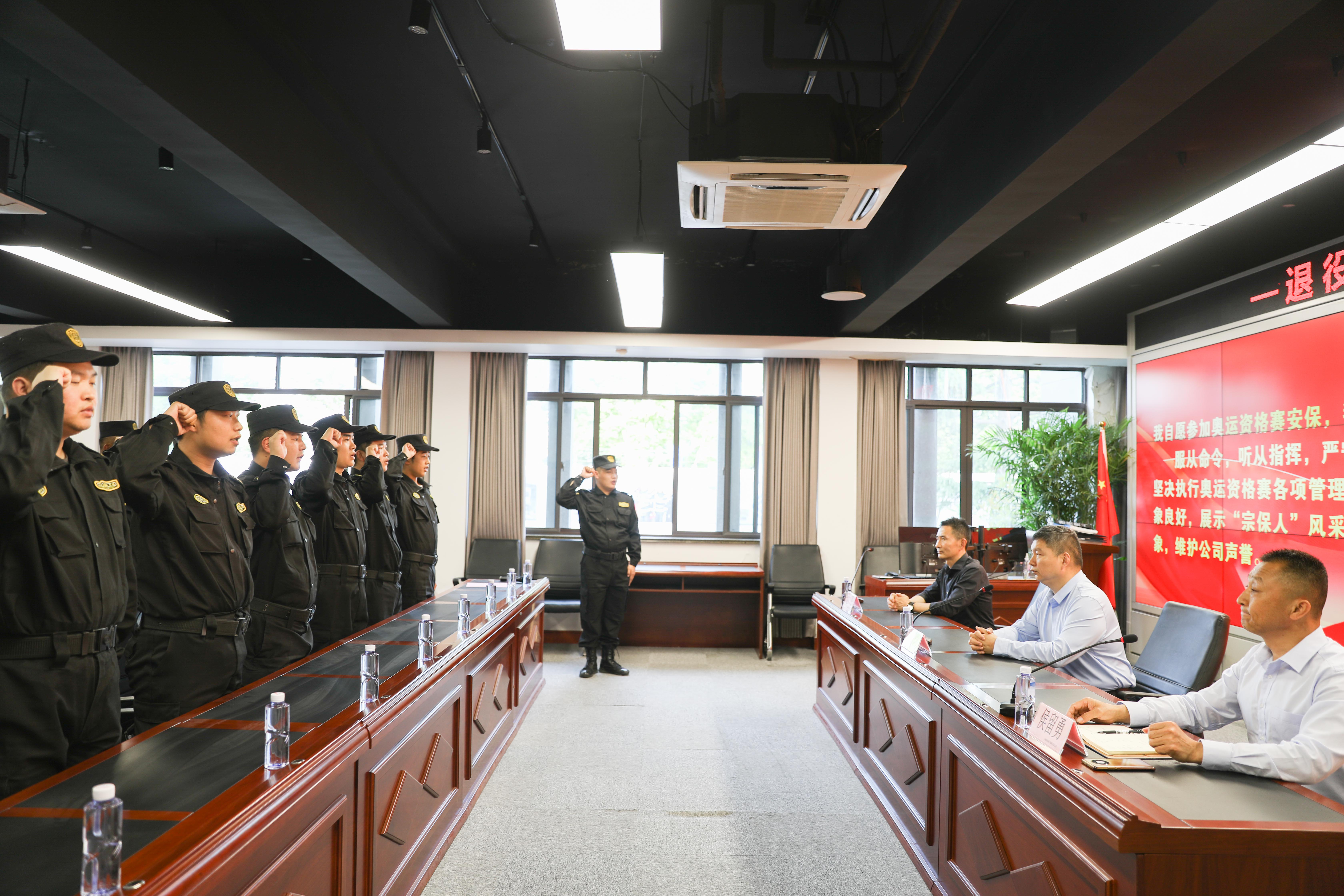 接著,公司參加奧運資格賽安保帶隊負(fù)責(zé)人程澤昆帶領(lǐng)全體人員進行宣誓,表示服從命令、聽從指揮,嚴(yán)守紀(jì)律、積極作為,為配合賽事舉辦方高標(biāo)準(zhǔn)完成好安保任務(wù)貢獻力量。