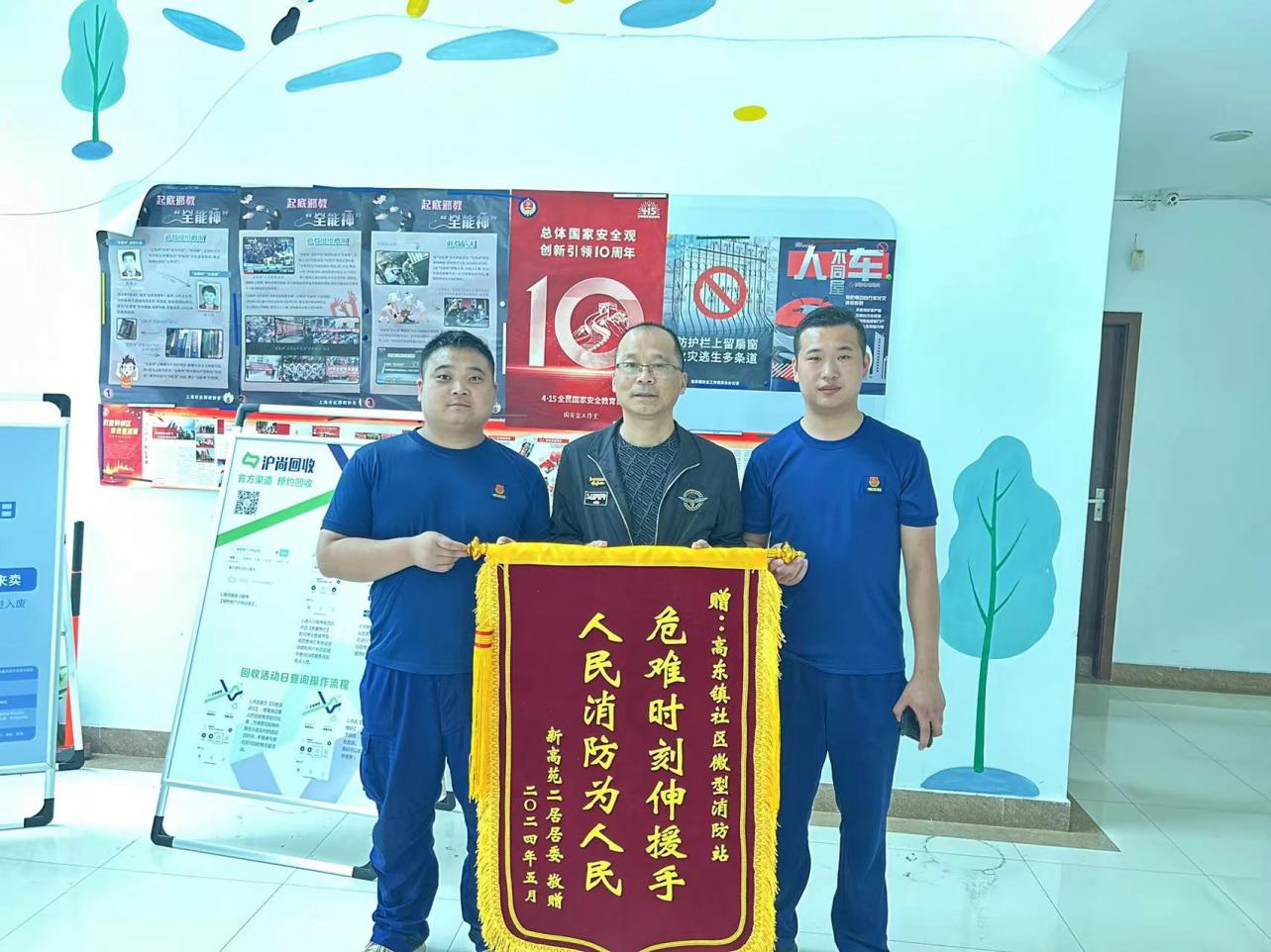 5月22日,宗保公司駐浦東新區(qū)高東鎮(zhèn)寶佳苑社區(qū)微型消防站收到新高苑二居委贈送的一面繡有“危難時刻伸援手 人民消防為人民”的錦旗,感謝宗保公司員工撲滅轄區(qū)火情的英勇行為。