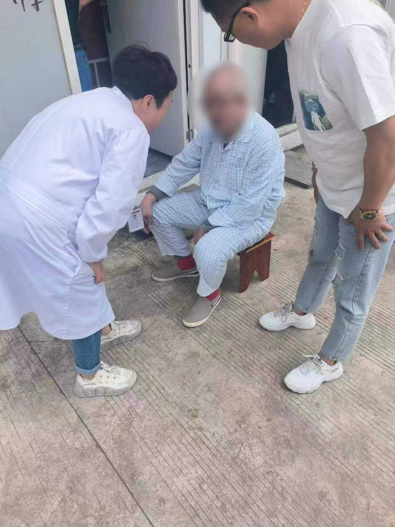 耿智圣很快與該醫(yī)院醫(yī)護人員取得了聯(lián)系,向她們說明了情況,醫(yī)護人員表示馬上會趕過來。在等待醫(yī)護人員時,耿智圣搬來凳子扶老人坐下休息,并遞給他一瓶礦泉水。大概過了10分鐘,醫(yī)護人員趕到現(xiàn)場,確認老人身份后將老人接走了。