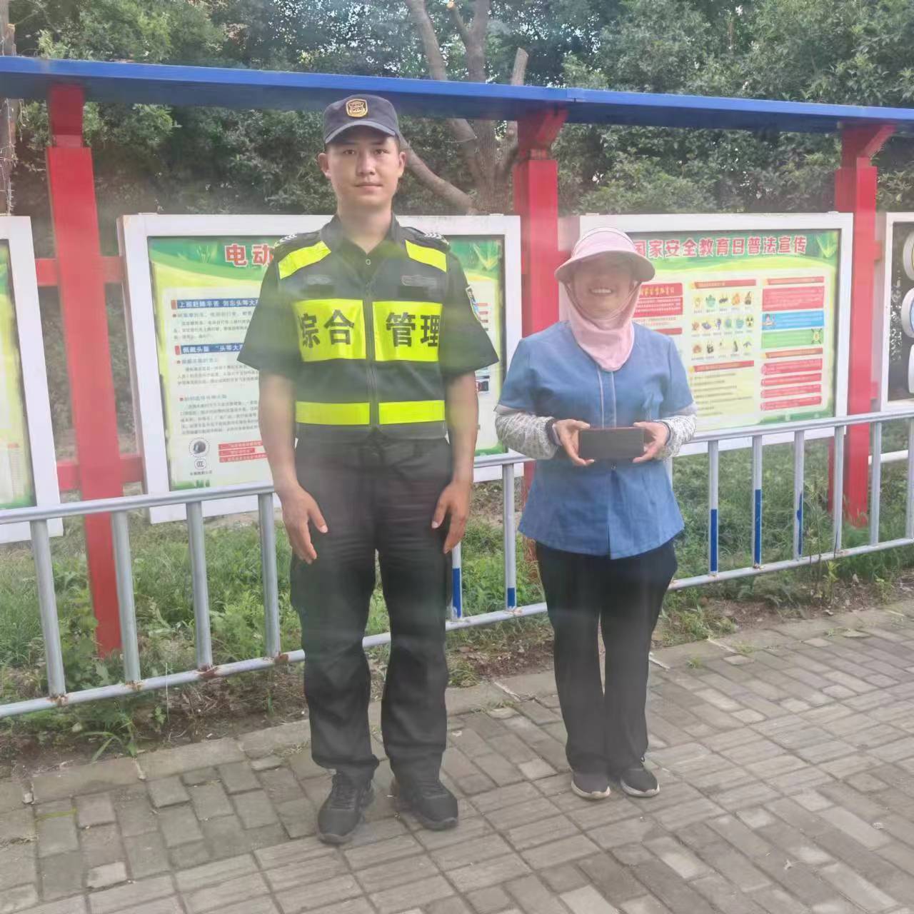 6月19日18:50,宗保公司駐浦東新區(qū)周浦市容輔助項目員工王勇在康沈路巡查時,撿到一部vivo手機,因手機設(shè)有鎖屏密碼一時無法聯(lián)系到失主,便將情況報告了班組長,并按指示把手機送交至周浦鎮(zhèn)城管執(zhí)法中隊。隨后,又返回崗位繼續(xù)巡查。