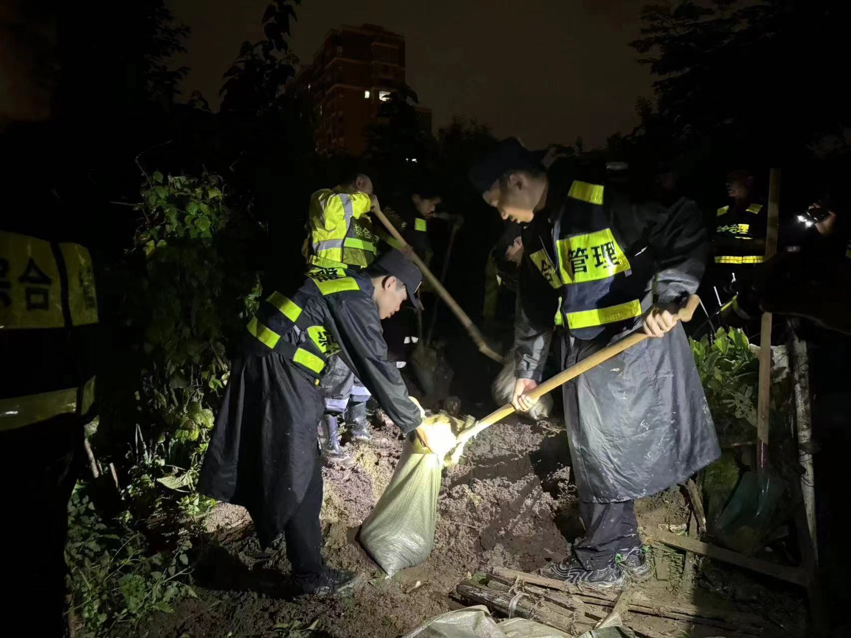情況緊急,時間緊迫。6月27日19:30,浙江民泰公司駐余杭區(qū)閑林市容項(xiàng)目接到閑林城管中隊(duì)?wèi)?yīng)急抗洪通知,請立即組織人員趕赴一米幼兒園段圍堰漫堤現(xiàn)場,支援圍堰增高作業(yè)。