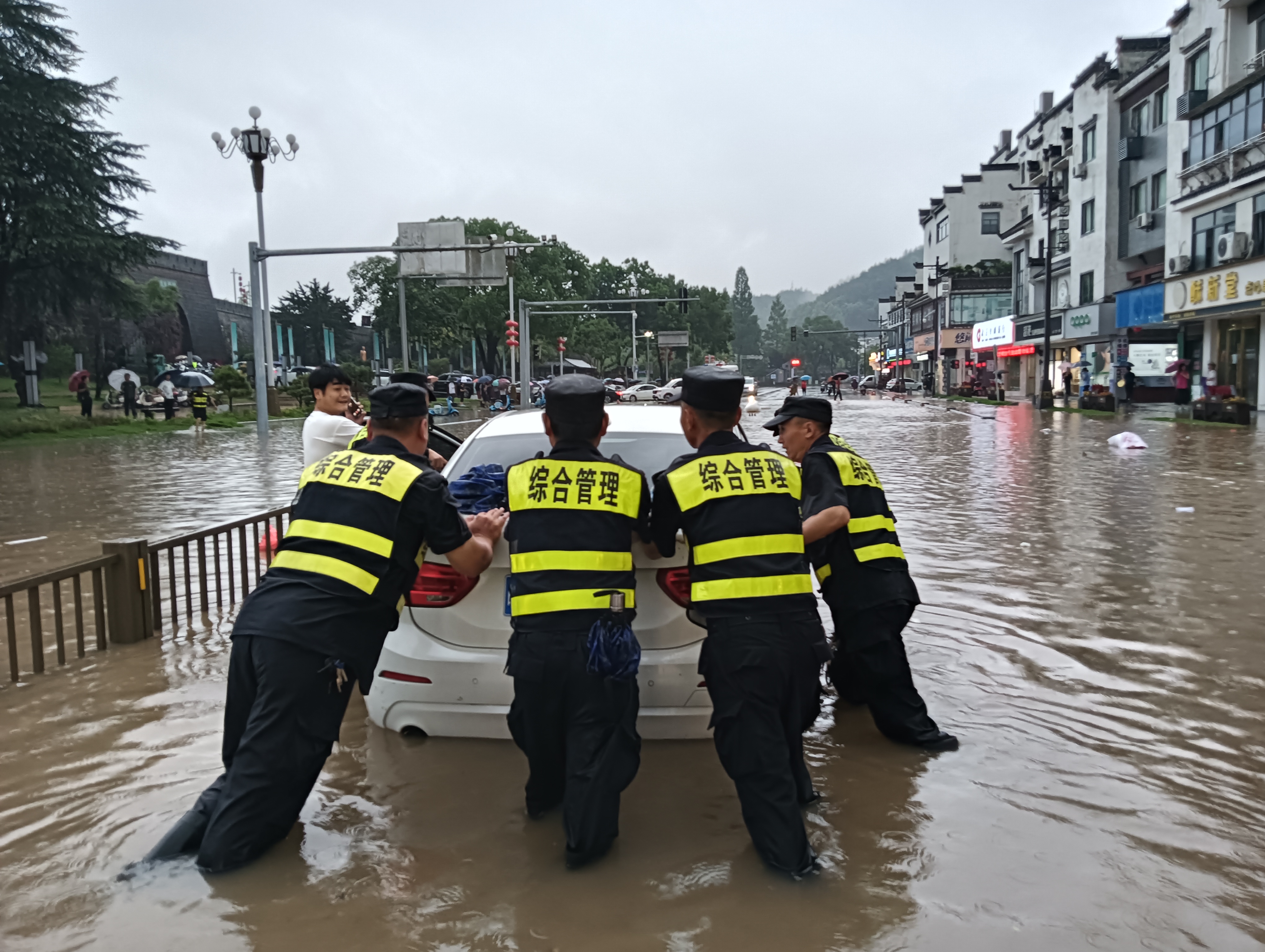 6月20日,安徽黃山市普降大暴雨,河流猛漲,山洪暴發(fā),歙縣多處路段出現(xiàn)積水,公司駐歙縣市容項(xiàng)目接到縣城管局抗洪救災(zāi)要求后,立即開展抗洪搶險(xiǎn)救援。他們協(xié)助轉(zhuǎn)移受困群眾,全力清理垃圾淤泥,仔細(xì)排查隱患區(qū)域,用實(shí)際行動(dòng)展現(xiàn)了公司員工的良好形象。