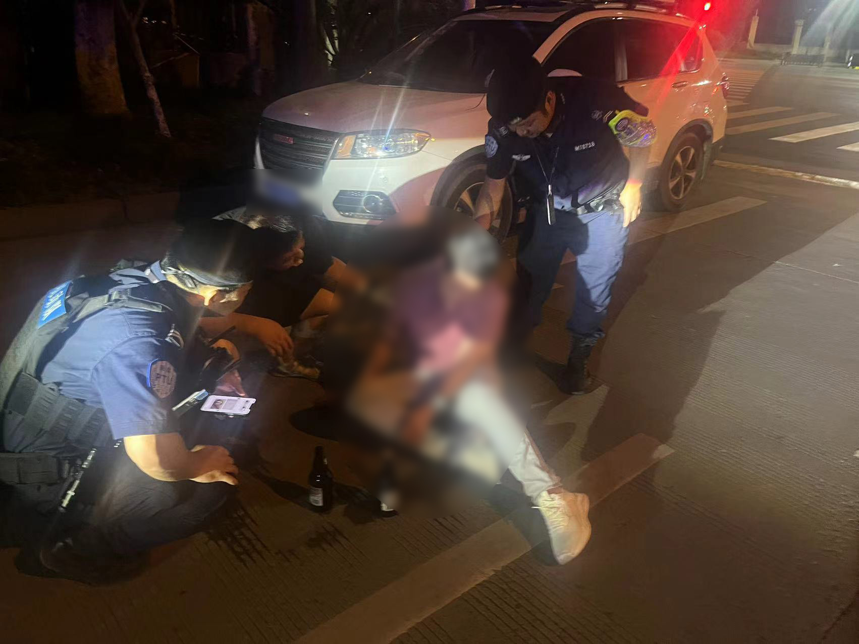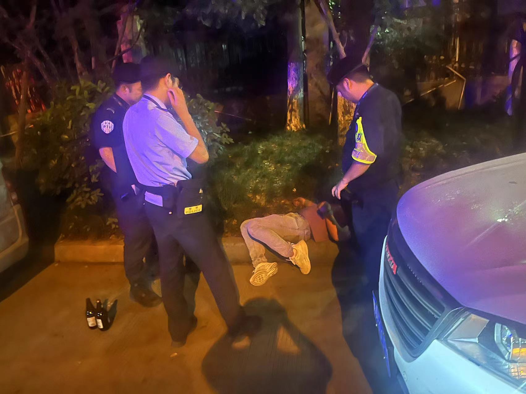 當(dāng)日23:10,公司員工楊有福和秦曉東路過(guò)良渚街道廟長(zhǎng)橋路與良運(yùn)街交叉口時(shí),發(fā)現(xiàn)一名男子躺在馬路上,就趕緊上前察看。男子散發(fā)著濃烈的酒氣,身旁還放著兩瓶啤酒,疑似處于醉酒狀態(tài)。“師傅醒醒,師傅醒醒,醒醒......”無(wú)論兩人怎么呼叫,該男子始終沒有回應(yīng)。
