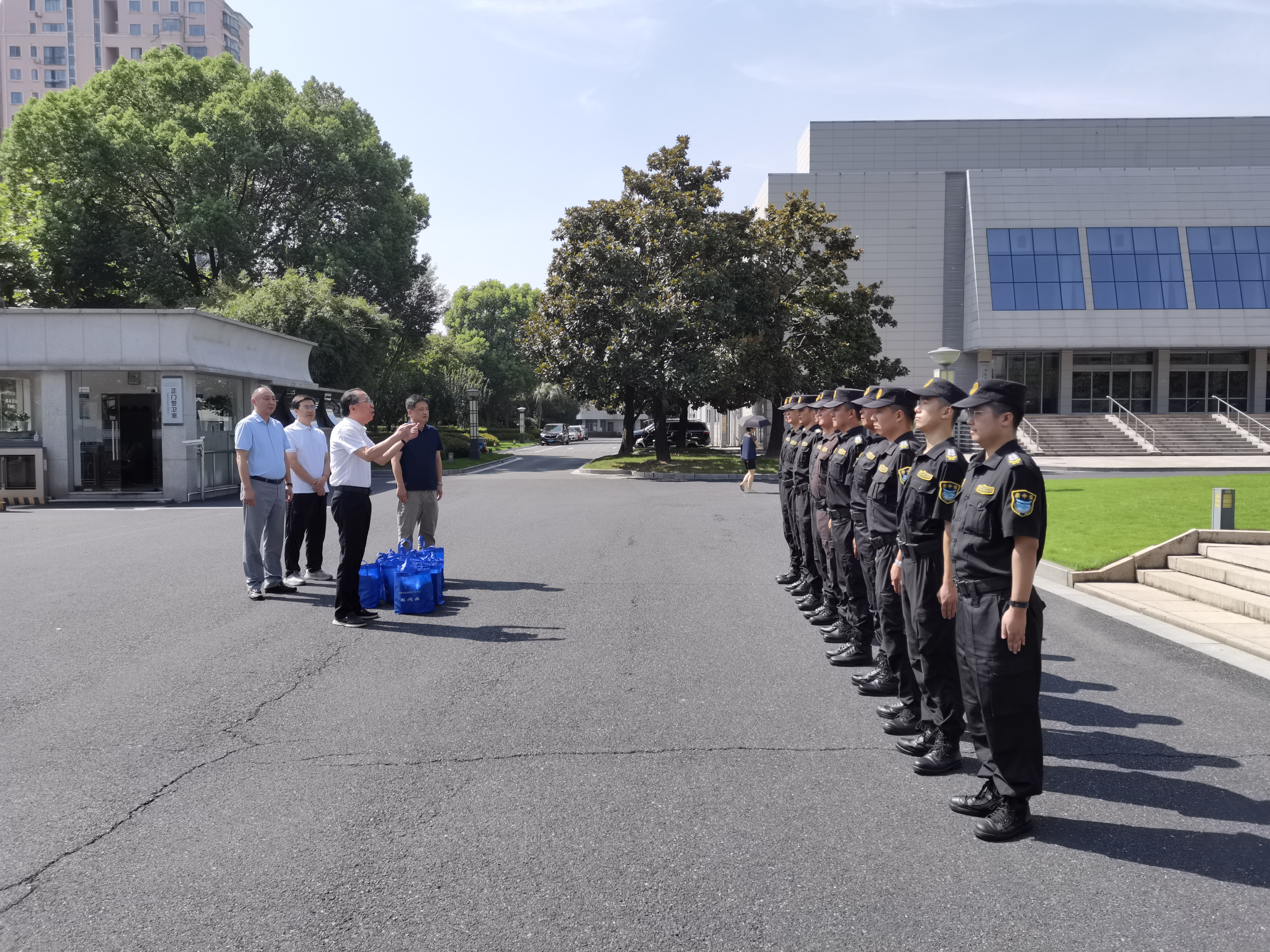 公司員工們感謝協(xié)會(huì)領(lǐng)導(dǎo)一行的關(guān)心慰問(wèn),表示將不畏酷暑,堅(jiān)守崗位,按照黨校保衛(wèi)部門(mén)的要求,履好職、盡好責(zé),以高效有力的服務(wù)保障樹(shù)立上海保安新形象,為上海保安服務(wù)行業(yè)增光添彩。