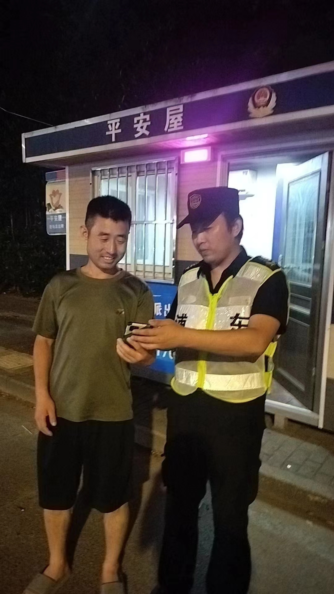 范成鋼想可能是剛經(jīng)過路口的人員遺失的,便趕緊用對講機呼叫下一個路口的同事,讓他幫忙提醒路過群眾,是否有人遺失了手機。