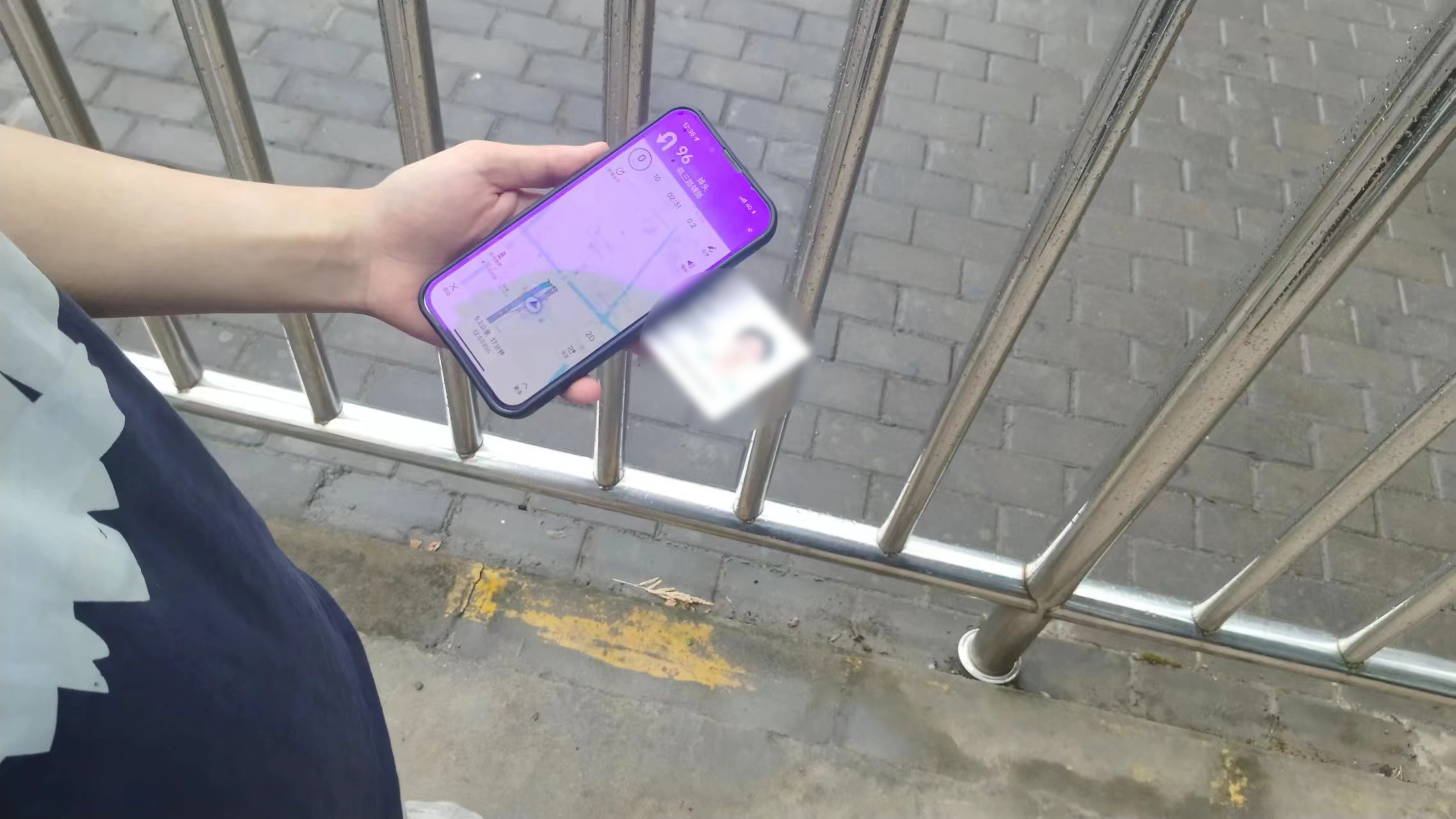 7月26日12:30,宗保公司駐浦東新區(qū)新場派出所輔助項目員工滿昌鵬在16號線新場地鐵站整理共享單車時,發(fā)現(xiàn)一單車車筐里有一部蘋果手機和一張身份證。滿昌鵬想失主可能會返回尋找,就一邊整理單車,一邊等待失主。