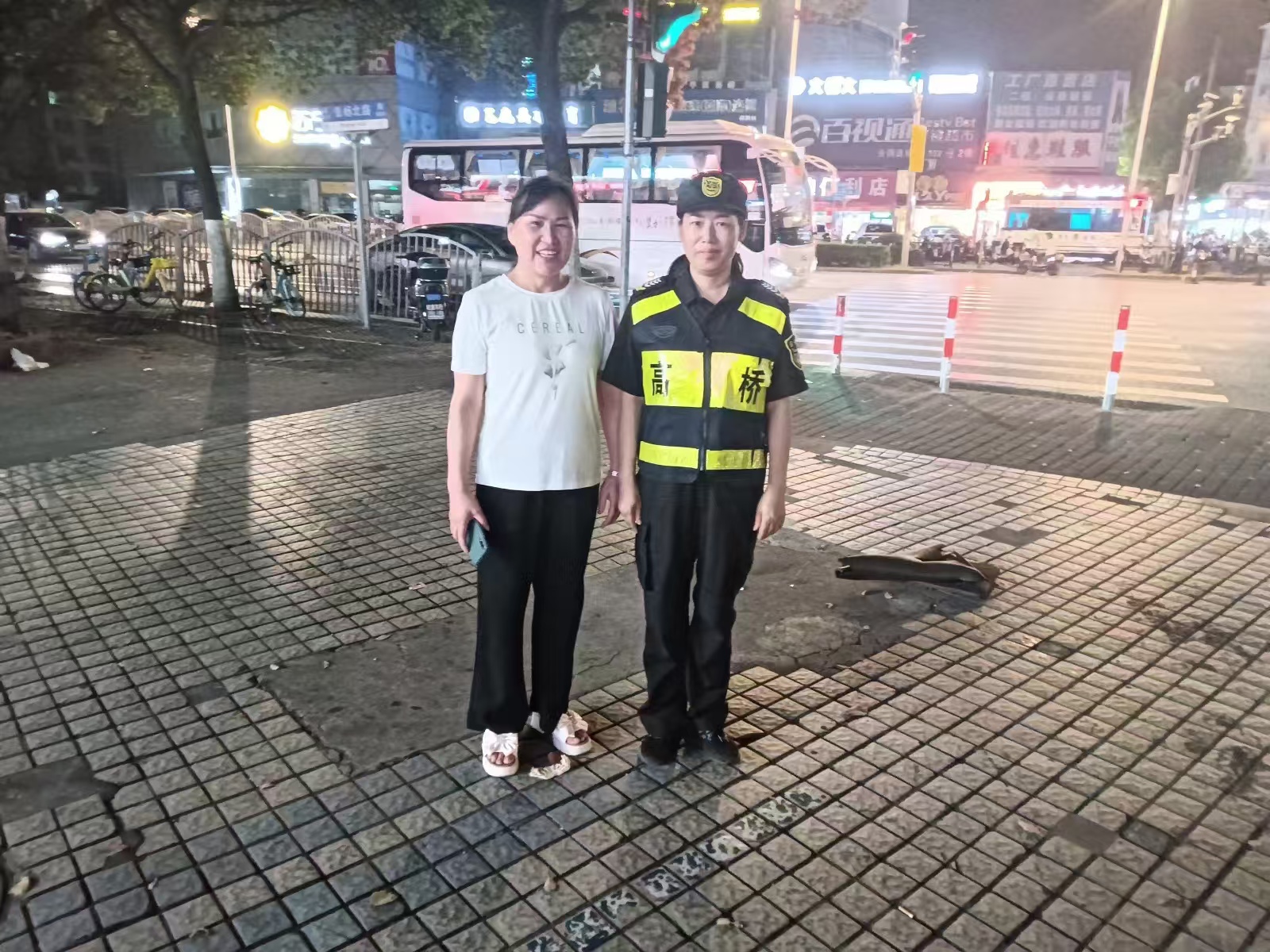 大約過了10分鐘左右,一位身穿白色短袖的女士,急匆匆地趕到現(xiàn)場,盯著地面來回細看,好像在尋找什么東西。但德琴見狀主動上前詢問,核實確認女士是失主后,就將手機交還給了她。手機失而復(fù)得,女士一再表示感謝。