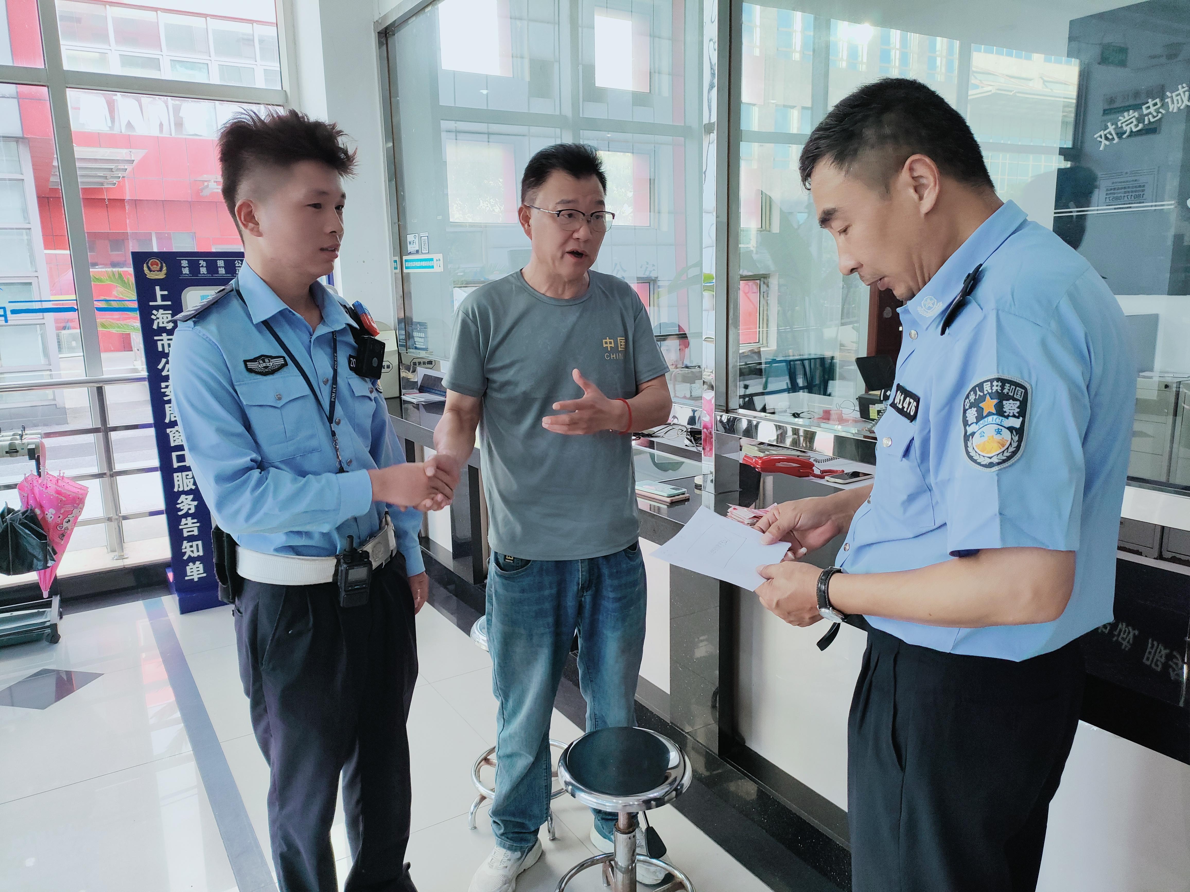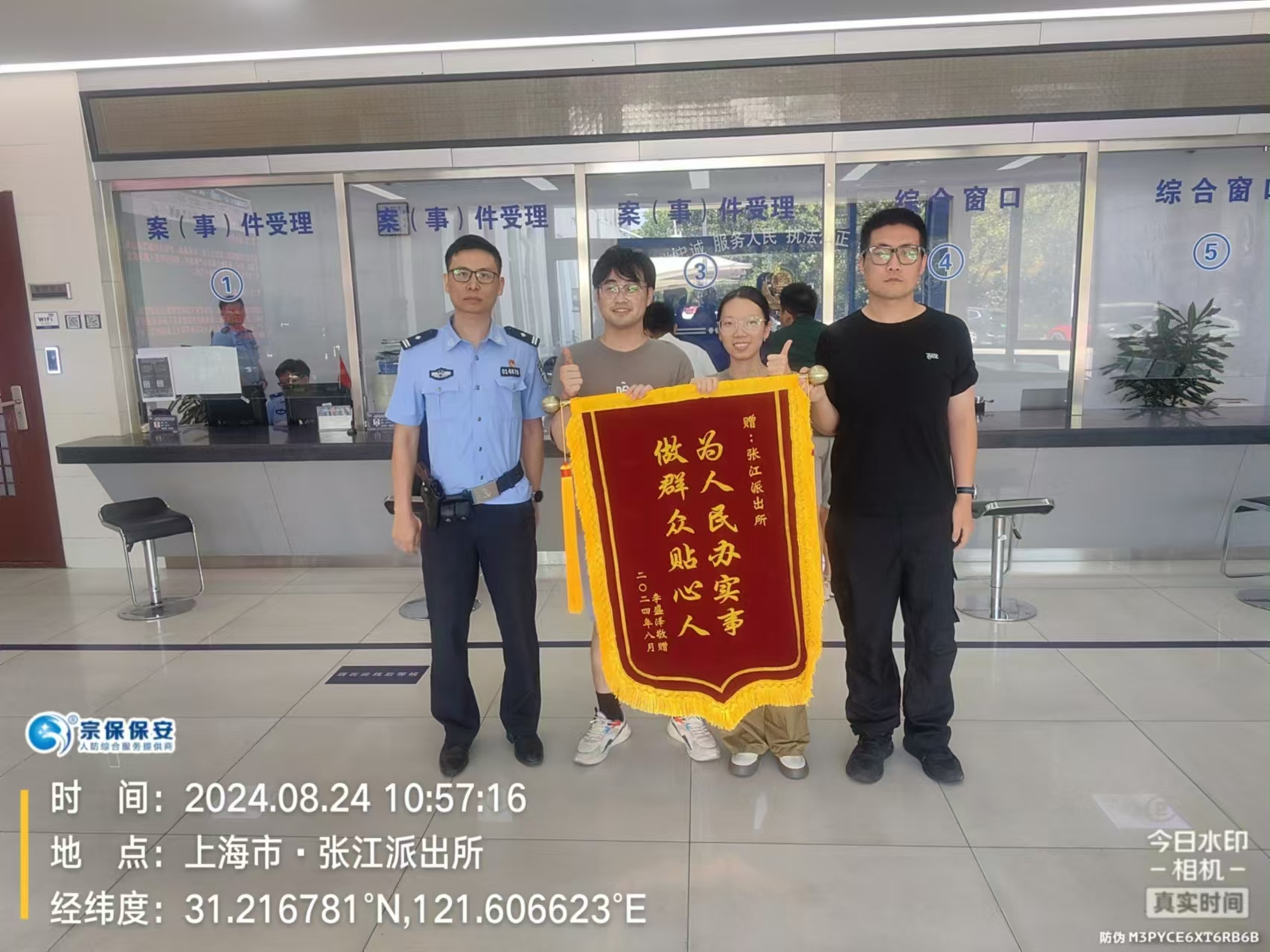 8月24日,浦東新區(qū)公安分局張江派出所收到市民李先生贈(zèng)送的一面繡有“為人民辦實(shí)事 做群眾貼心人”的錦旗,感謝宗保公司駐張江派出所項(xiàng)目員工董晉春和范利峰幫其找回丟失的電瓶車。