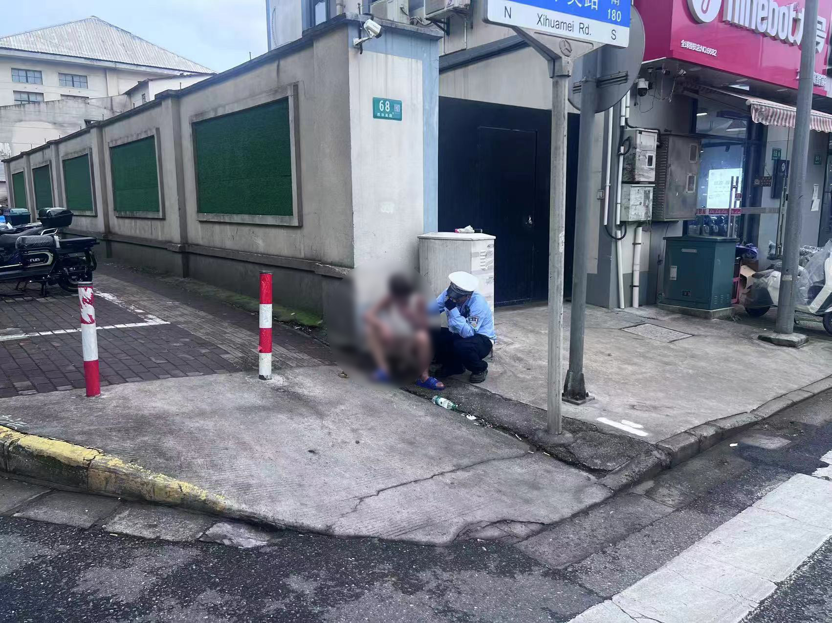 當(dāng)日18:00,宗保公司員工楊智豪在北翟路華江路交叉口執(zhí)勤時(shí),發(fā)現(xiàn)人行道上躺著一位老人,便立即上前察看。