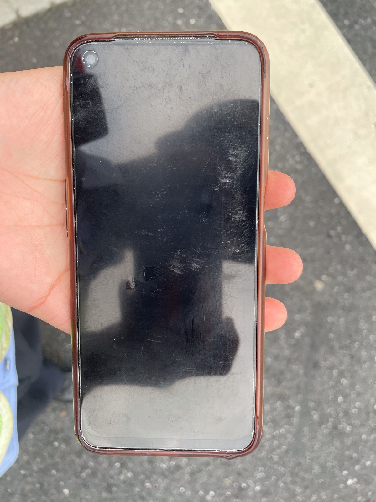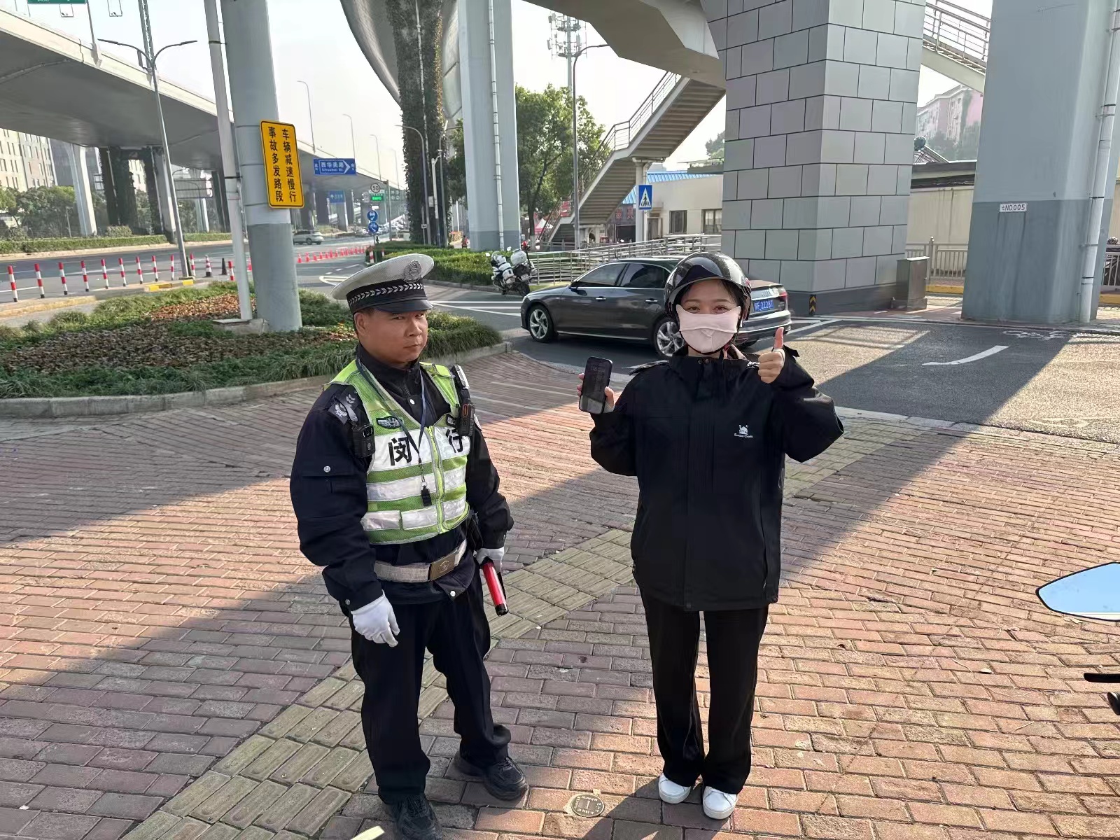 過(guò)了一會(huì)兒,一位戴著頭盔的男子急匆匆來(lái)到現(xiàn)場(chǎng),邊走邊看好像在尋找什么東西。周駿強(qiáng)見狀主動(dòng)上前,詢問(wèn)他是不是在找手機(jī)。